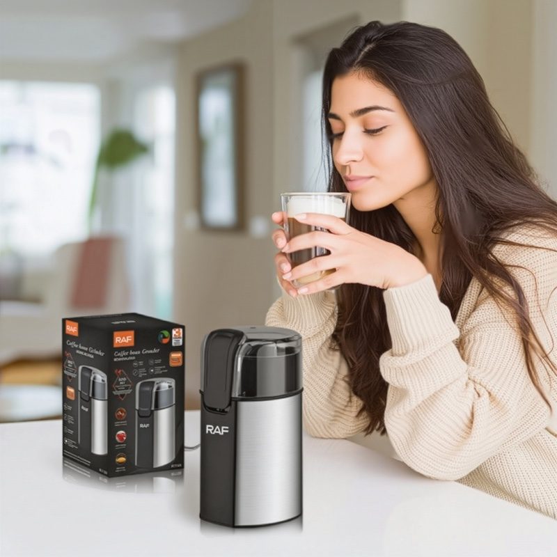 Кофемолка RAF R-7123 из нержавеющей стали и прозрачной крышкой