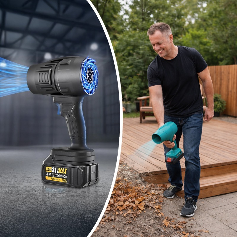 Аккумуляторная воздуходувка Mini Jet Turbo Fan 24V – компактный и мощный инструмент для аккуратной уборки. Сильный поток воздуха быстро сдувает листья, пыль, песок и мелкий мусор, оставляя чистую поверхность. Встроенный аккумулятор обеспечивает полную свободу движений без проводов и ограничений.