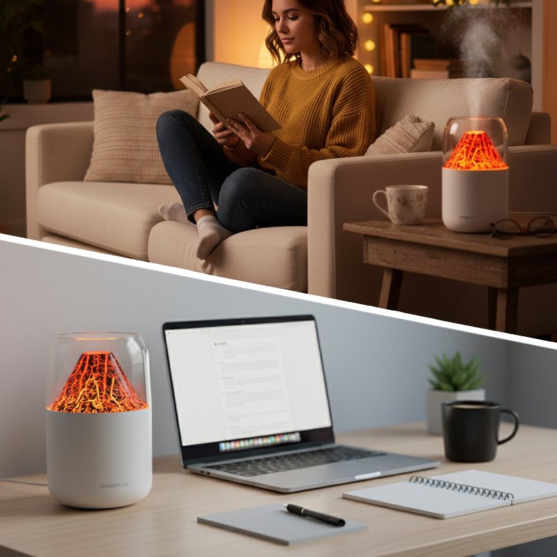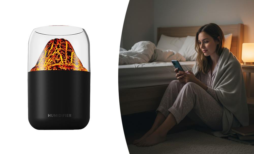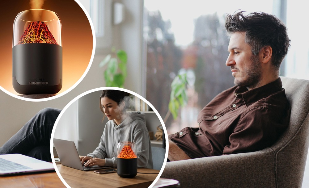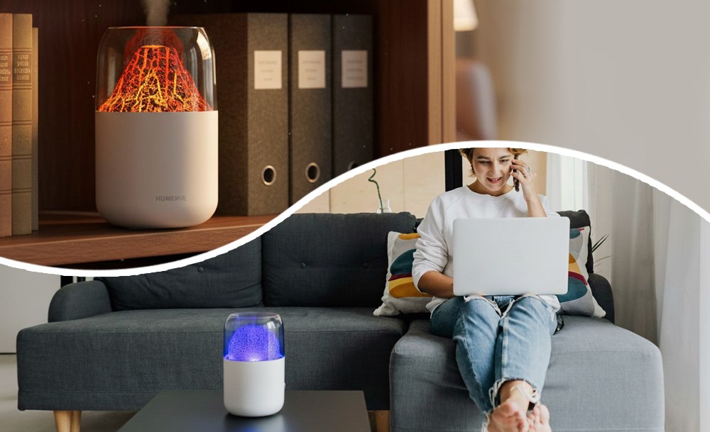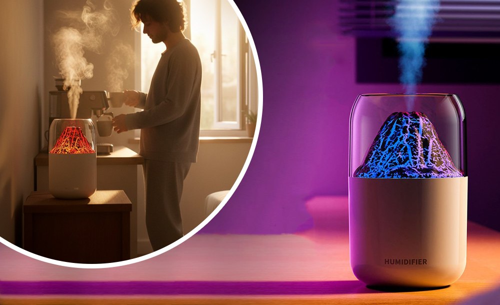 Арома увлажнитель Volcano Humidifier обеспечивает оптимальный уровень влажности воздуха. Устройство использует ультразвуковую технологию для создания мелкого тумана, помогающего улучшить качество воздуха и облегчить дыхание. Визуальный эффект «вулкана» создается благодаря LED подсветке и особому режиму распыления. Наличие функции аромадифузора позволяет добавлять эфирные масла для наполнения пространства приятным ароматом.