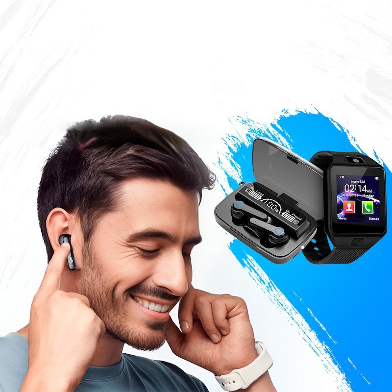 Беспроводные наушники M19 с PowerBank + Умные часы Smart Watch DZ09