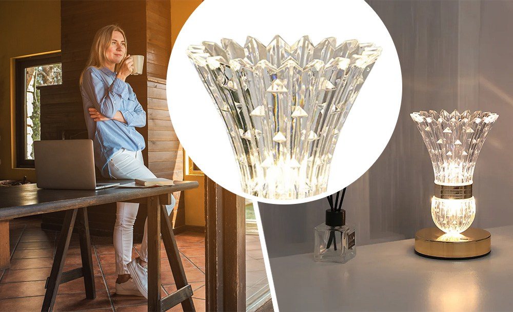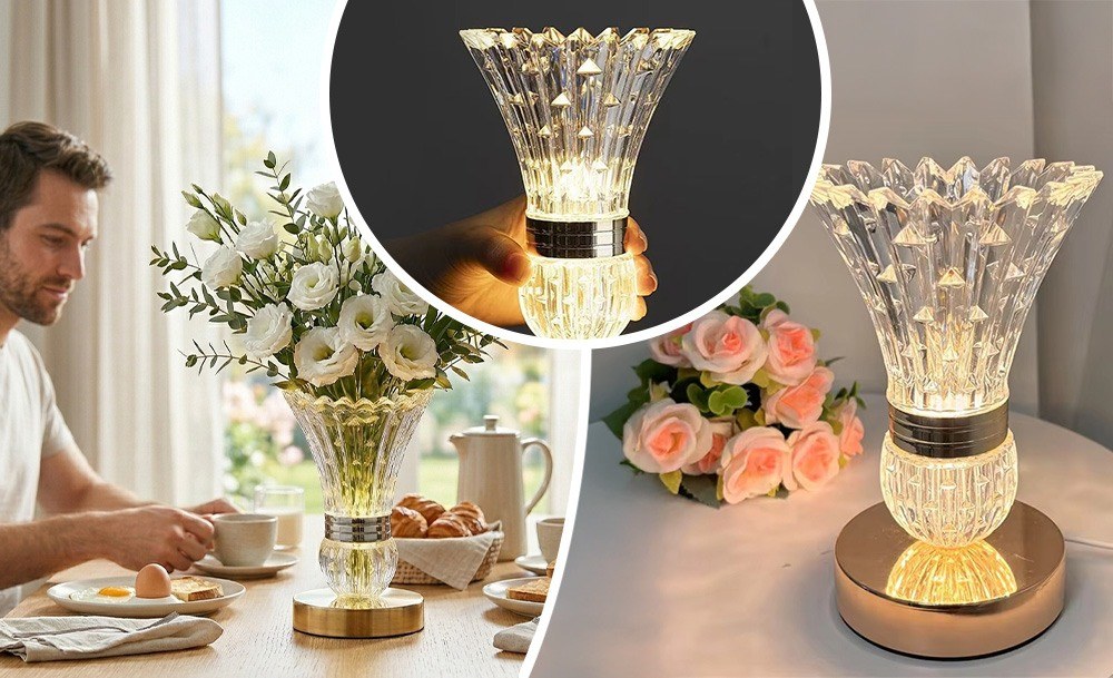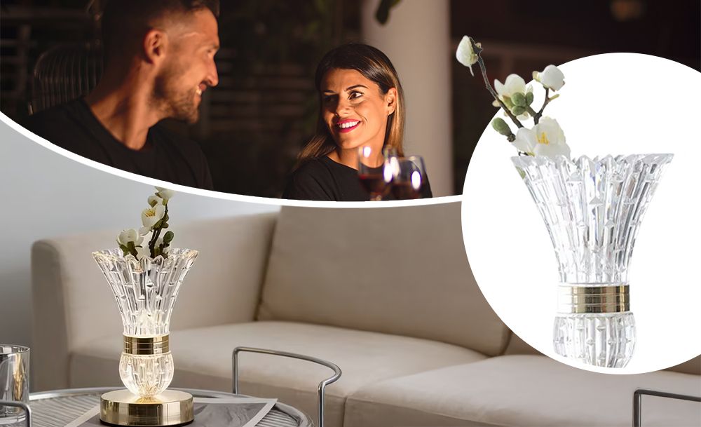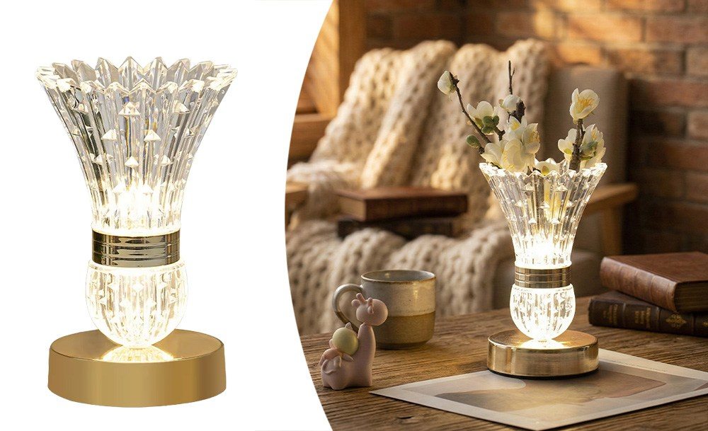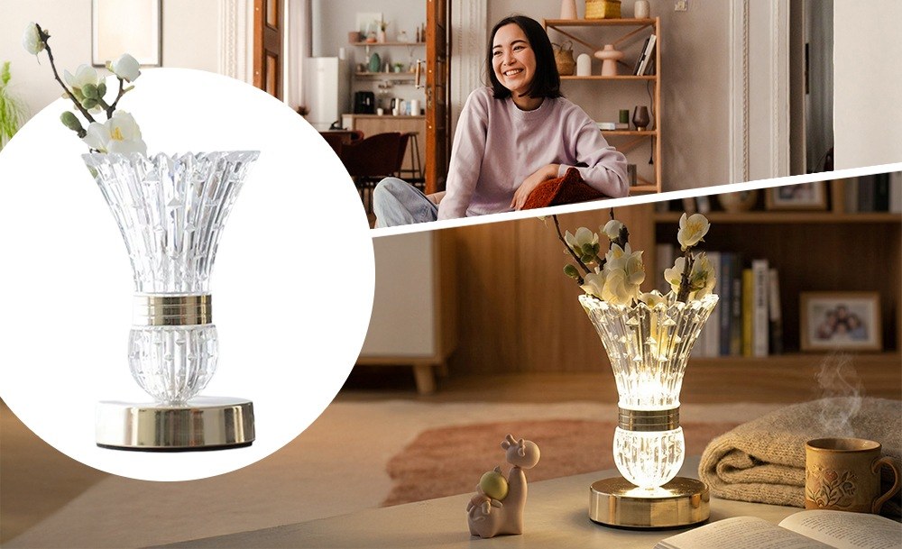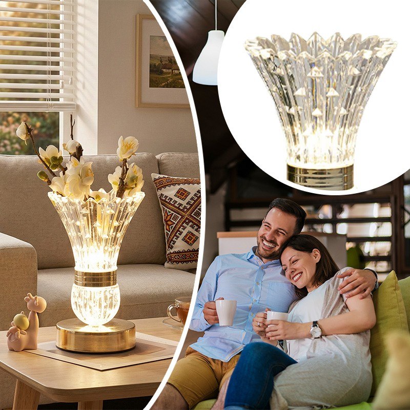 Настольная LED-лампа в виде хрустальной вазы с цветами – это изящный ночник, который наполняет пространство мягким светом и создает неповторимую атмосферу уюта. Эффект хрусталя красиво преломляет свет, формируя нежные переливы.