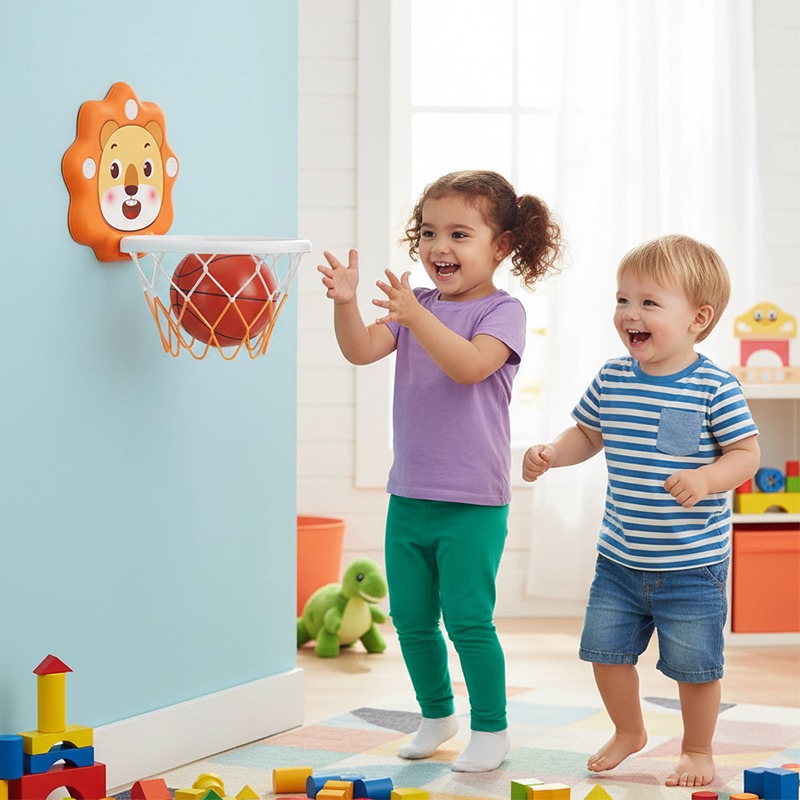 Такой набор помогает развивать у детей координацию, меткость, моторику и физическую активность. Прочный и легкий, он идеально подходит для ежедневных развлечений, превращая любое пространство в маленькую баскетбольную площадку.