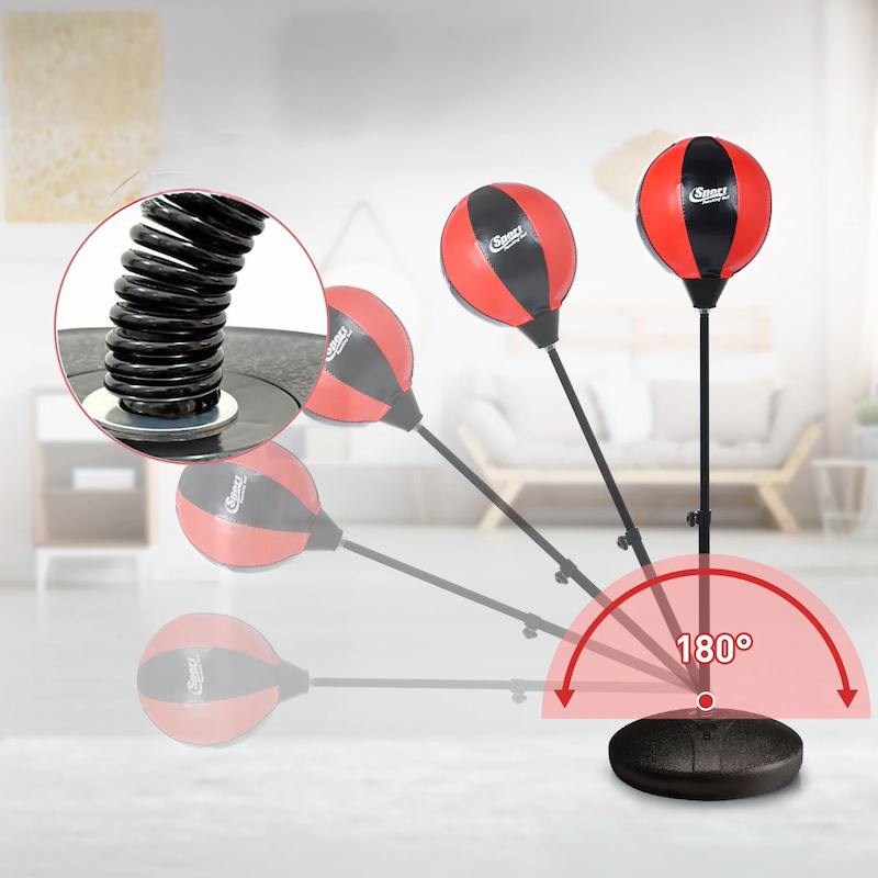 Нижняя подставка заполняется водой, песком или другим наполнителем для стойкости. Боксерский набор просто устанавливается. Можно использоваться в помещении и на улице. Принцип действия: Тяжелая платформа стоит на полу, к ней прикреплена длинная стоянка на пружине, а к конюшне прикреплена груша.