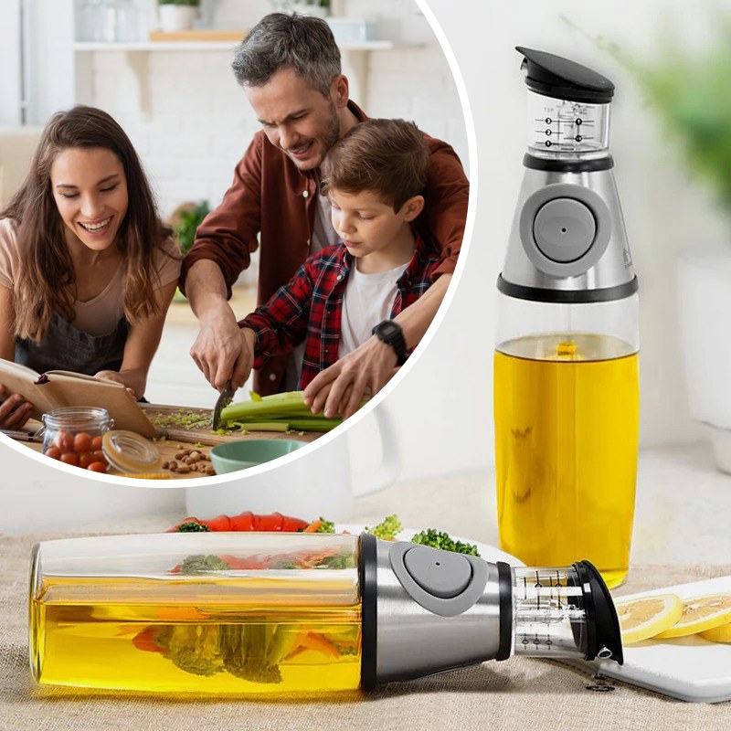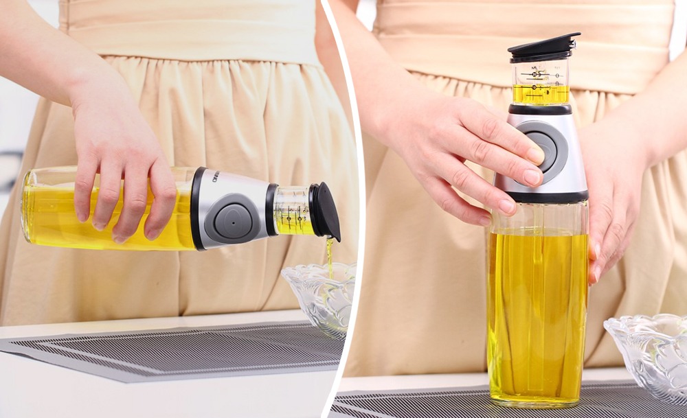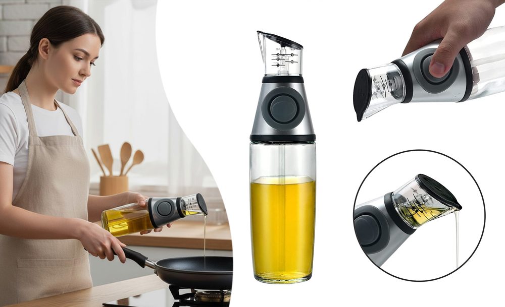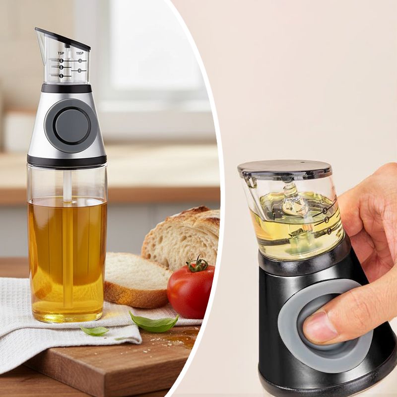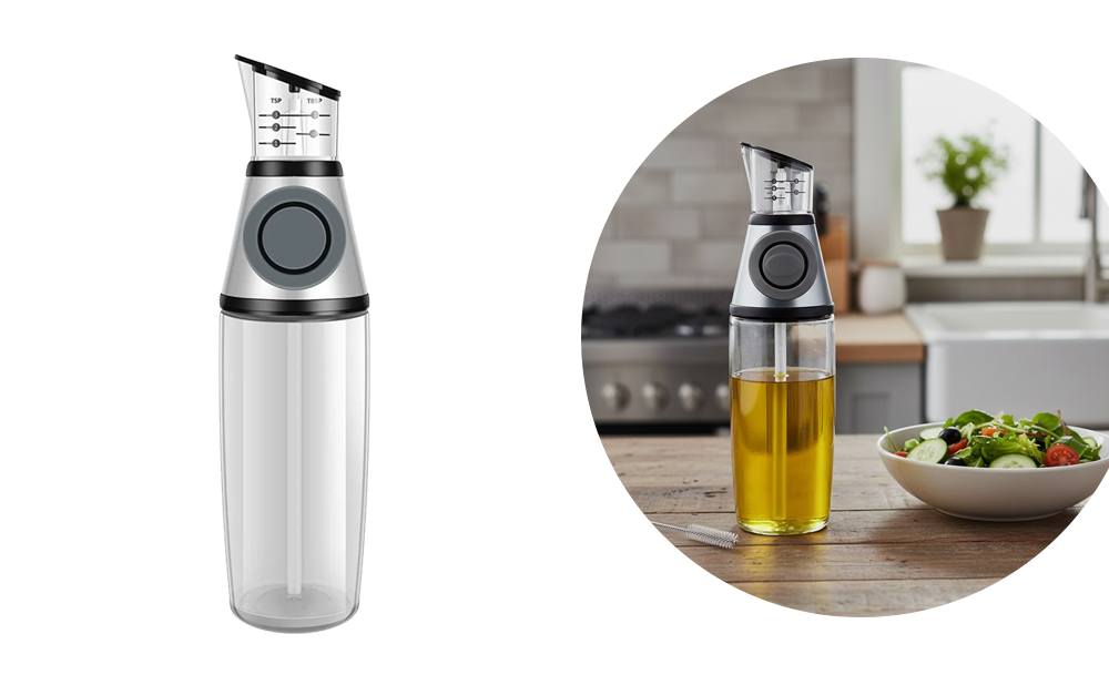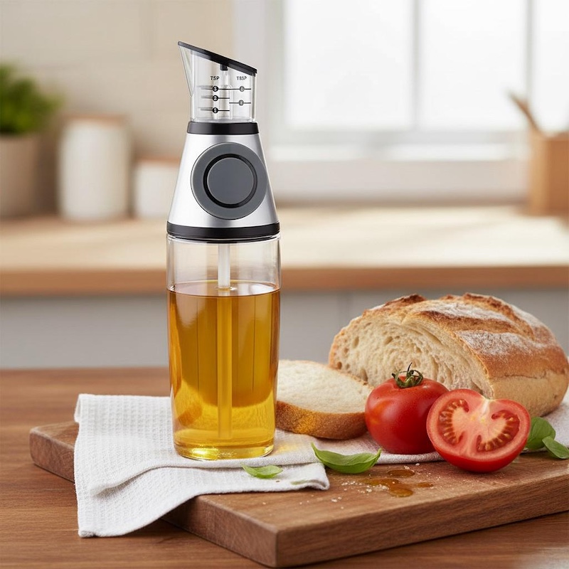 Этот дозатор Press & Measure разработан для точного контроля количества растительного масла во время готовки. Он оснащен встроенной мерной шкалой, позволяющей легко отмерить необходимый объем, например чайную или столовую ложку, без использования отдельных мерных приборов.
