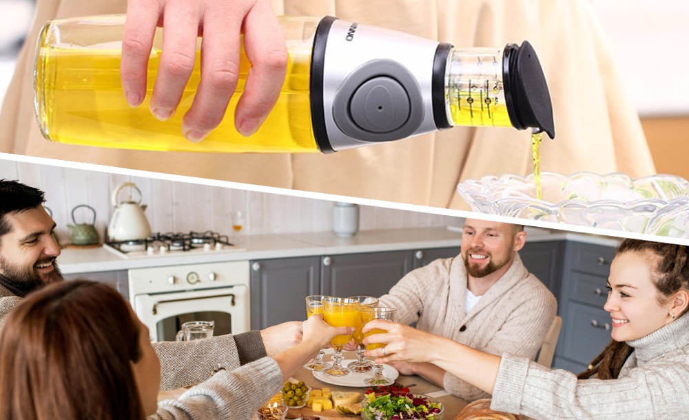 Масло поднимается в верхний отсек с мерной шкалой при нажатии на боковые кнопки. Такой механический насос устраняет беспорядок и обеспечивает порционную подачу. Дозатор легко разбирается для очистки. Это идеальный инструмент для салатных заправок, выпечки и рецептов, требующих точной дозировки жидкостей.