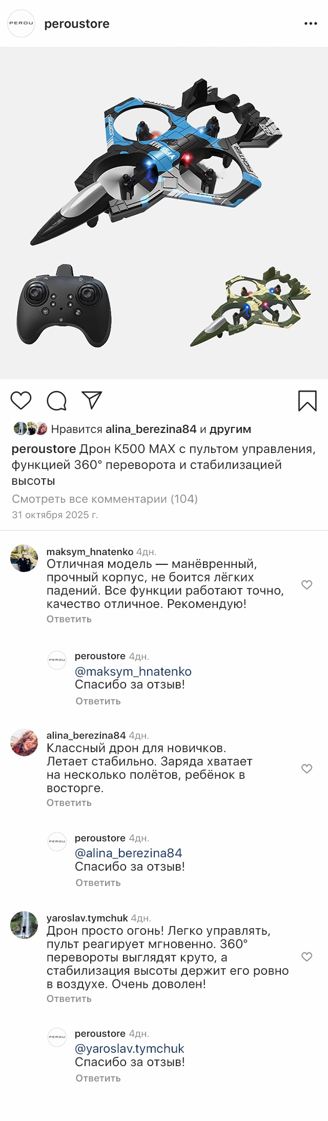 Дрон K500 MAX управляется с помощью комплектного пульта. Эта модель предлагает функцию стабилизации высоты, которая упрощает управление, позволяя аппарату зависать на заданной позиции. K500 MAX также оснащен возможностью выполнять динамические перевороты на 360°, что придает разнообразию полетам.