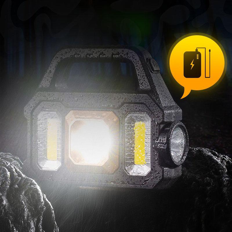 Два мощных встроенных аккумулятора и солнечная батарея позволяют подзарядить его как от сети, так и от солнечного света. А кроме того, фонарь имеет функцию PowerBank, что дает возможность заряжать через него телефон и другие гаджеты.