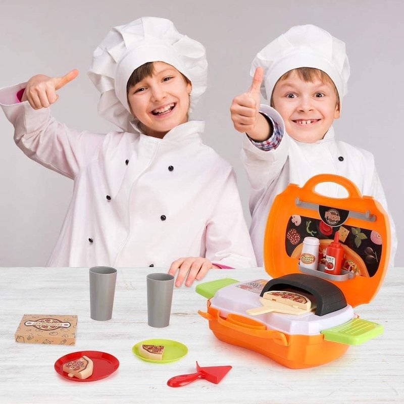 Игровой набор Pizza включает 22 предмета и предназначен для детей, желающих окунуться в мир приготовления вкусных пицц и кулинарных фантазий. Переносная пиццерия собирается в один очень удобный чемоданчик на защелках. В раскрытом виде игра представляет собой небольшую рабочую зону с печью и зоной для хранения продуктов и инструментов. С таким набором ребенок почувствует себя настоящим пиццеолом!