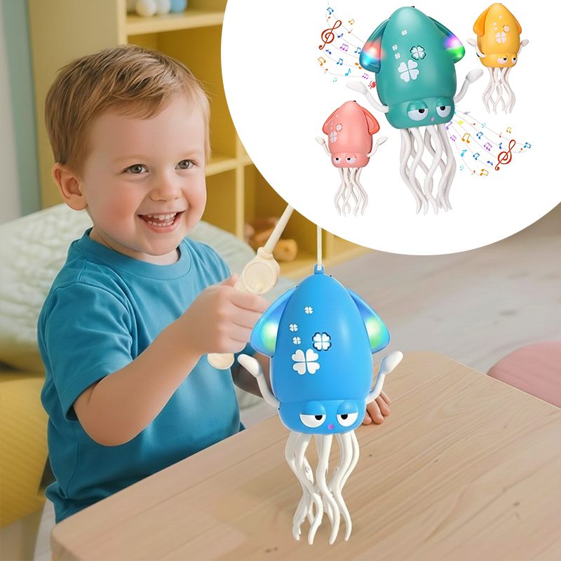В комплекте есть специальная удочка с крючком, чтобы ребёнок мог ловить осьминога и устраивать увлекательные игры. Игрушка пластиковая, лёгкая и безопасная для детей, идеально подходит для игры дома. Это отличный способ развивать моторику, внимание и подарить ребёнку массу радости, веселья и ярких эмоций!