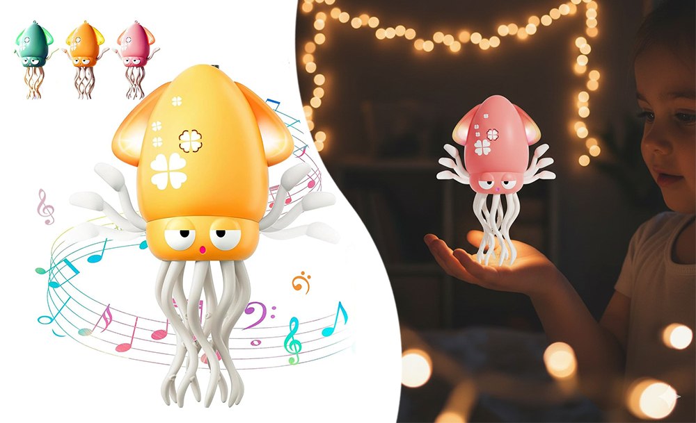 Интерактивный танцующий осьминог — это яркая и весёлая игрушка для активной игры! Он светится разноцветными огнями, проигрывает весёлую музыку и двигается на маленьких колёсиках, шевеля лапками, создавая настоящее шоу прямо у вас дома.