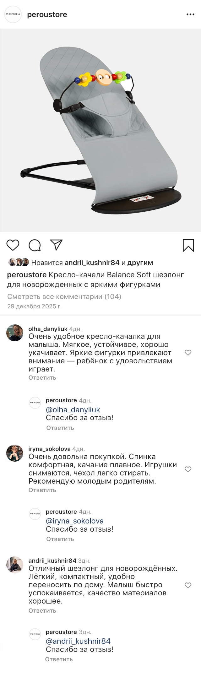 Яркие подвесные фигурки развивают внимание, зрение и моторику, превращая отдых в увлекательную игру. Устойчивая конструкция обеспечивает безопасность и удобство использования качалки как дома, так и в поездках, а практичные материалы легко очищаются. Balance Soft – забота о малыше и спокойствие для родителей.