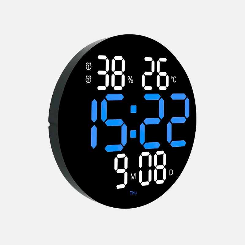 Круглые настенные часы 3813L, выполненные в черном корпусе с яркой подсветкой больших цифр, обеспечивают удобство использования в любом интерьере. Устройство одновременно показывает время, дату, день недели, температуру и влажность воздуха, позволяя всегда быть в курсе ключевой информации.