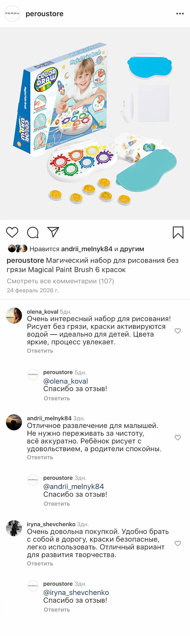 Компактный набор удобно брать с собой в дорогу или использовать дома. Он развивает воображение, мелкую моторику и творческие навыки, превращая процесс рисования в увлекательную игру без хаоса и беспорядка.