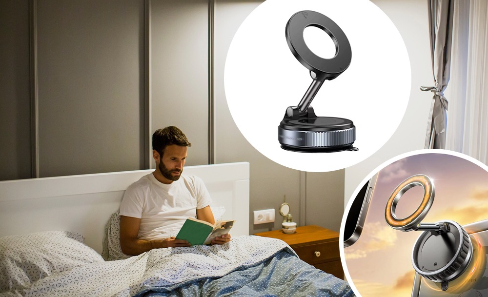 Свободный оборот на 360° позволяет выбирать подходящий угол обзора для навигации, звонков или просмотра видео. Совместимость с MagSafe делает держатель подходящим для любых смартфонов с магнитным кольцом. Компактный гаджет экономит место и обеспечивает безопасность в пути: руки всегда остаются на руле, а телефон – под постоянным контролем.