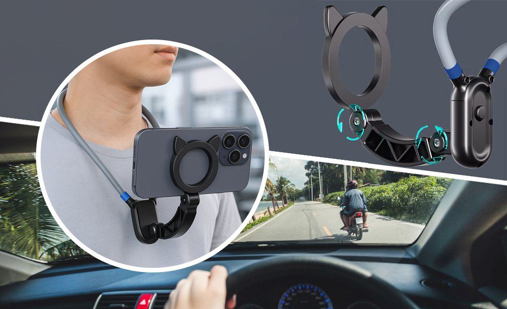 Магнитный держатель на шею — это удобное решение для съёмки от первого лица без лишних усилий. Просто прикрепите телефон с помощью магнита, наденьте крепление на шею — и ваши руки остаются свободными. Идеально для видеоблогов, стримов, готовки, мастер-классов или активного отдыха.