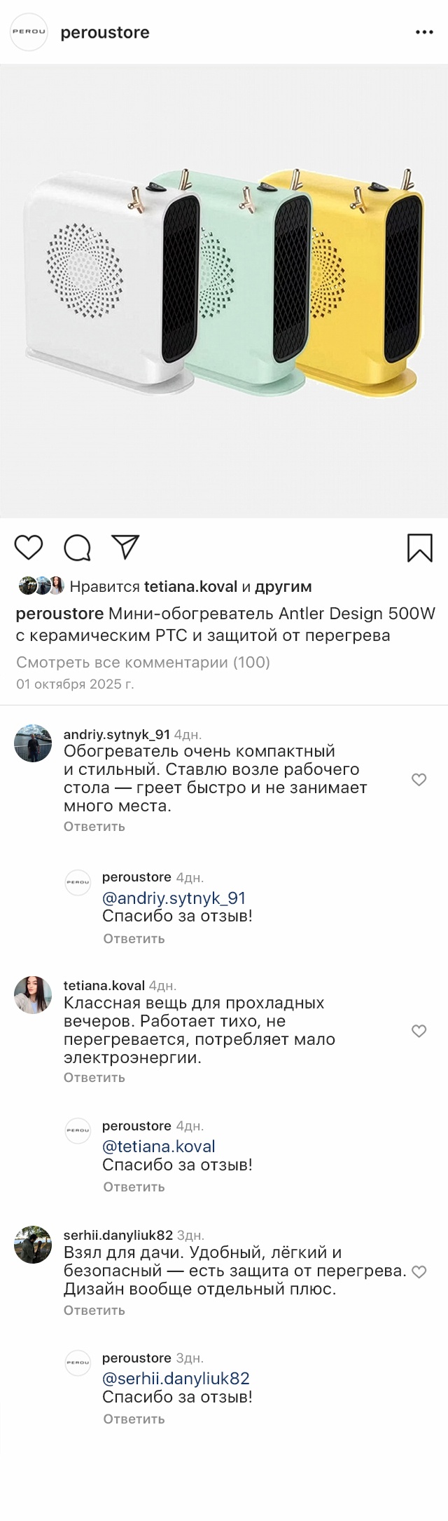 Прибор имеет встроенную защиту от перегрева и автоматически выключается при опрокидывании, что обеспечивает полную безопасность при использовании. Бесшумная работа не отвлекает во время работы или отдыха. А оригинальный дизайн с «оленьими рогами» придает интерьеру стиль и уют. Обогреватель идеально подходит для рабочего стола или небольших помещений.