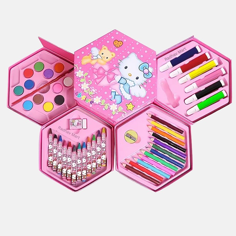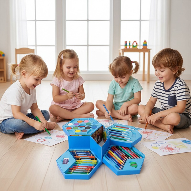Этот универсальный набор предлагает 46 инструментов для юных художников и художниц. В нем собраны основные материалы для рисования и раскрашивания. Набор расположен в удобном кейсе для хранения и транспортировки, что помогает организовать рабочее место.