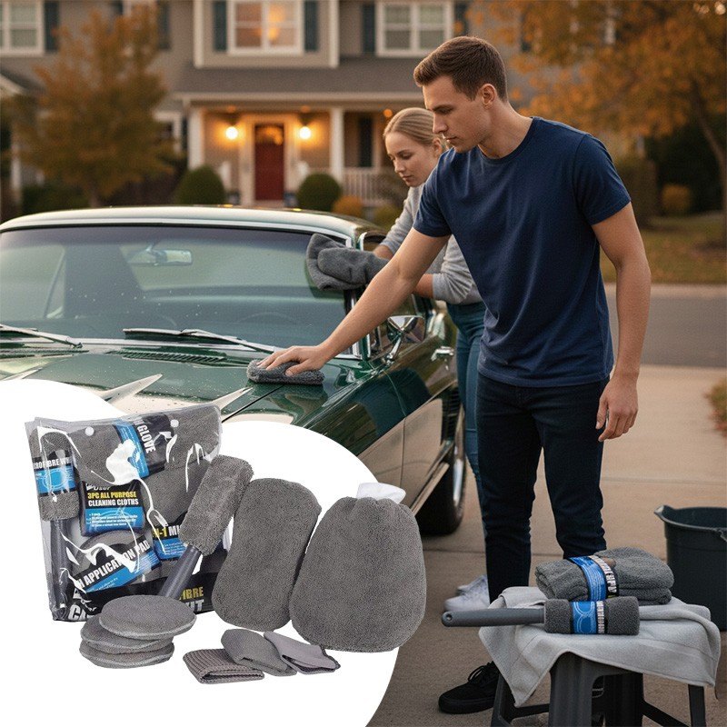 Набор для мойки авто 9 в 1 – это все, что нужно для идеальной чистоты автомобиля. В комплект входят полотенца из микрофибры, губка и двухсторонняя перчатка – для бережного ухода за кузовом, стеклами и салоном. Практичные аксессуары экономят время и силы, а универсальность набора позволяет выполнять как быструю мойку, так и тщательный детейлинг.