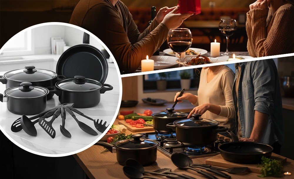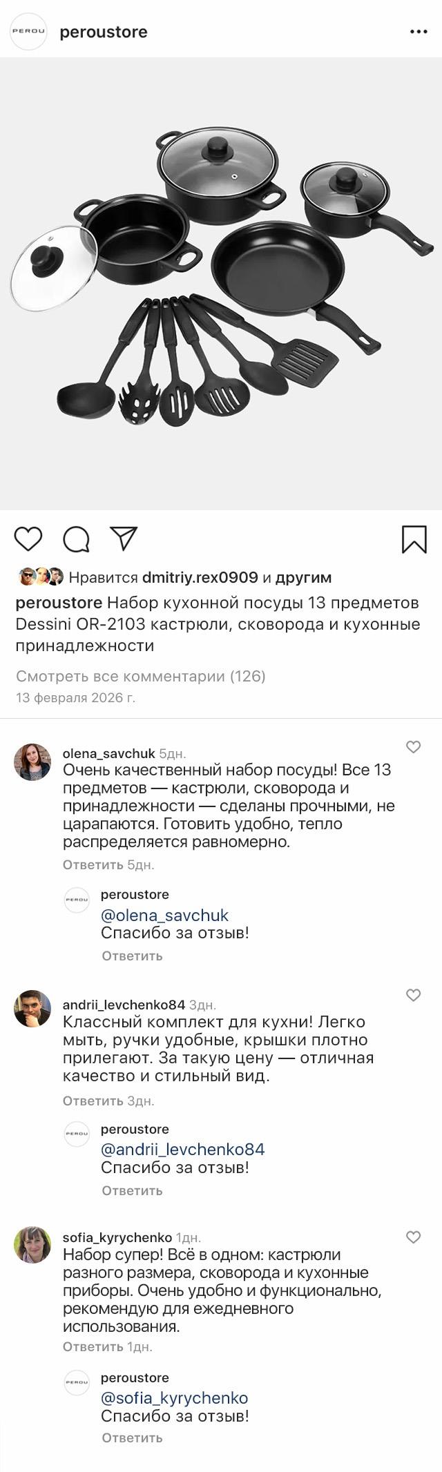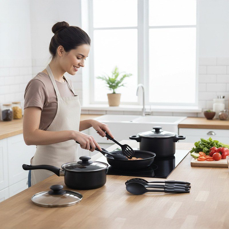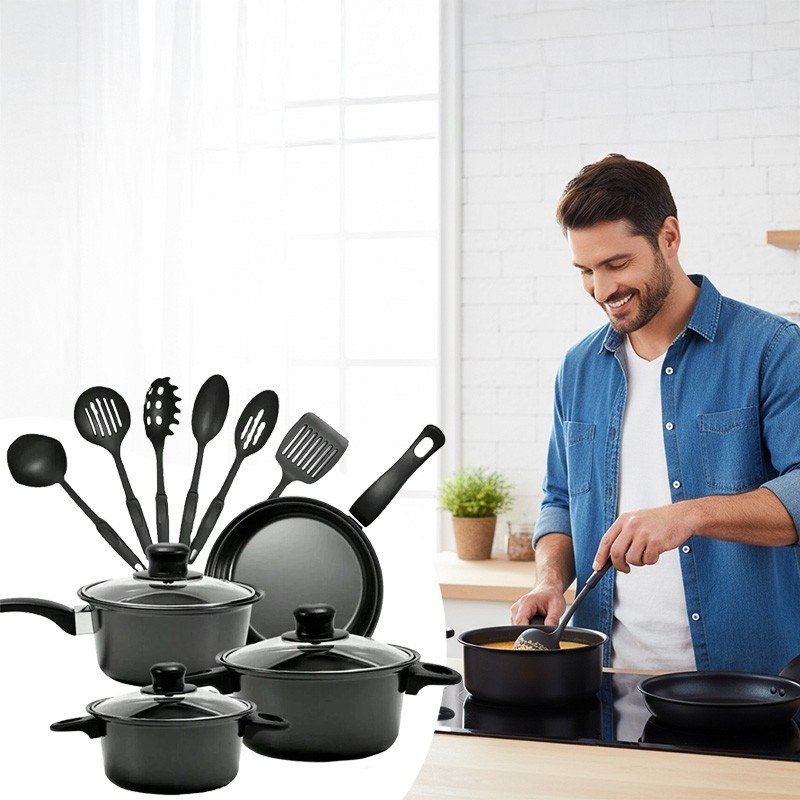 Набор посуды Dessini OR-2103 – это универсальное решение для домашней кухни. В комплект входит 13 предметов: кастрюли разных объемов, удобная сковорода и практичные кухонные принадлежности – все, что нужно для варки, жарки, тушения и запекания.