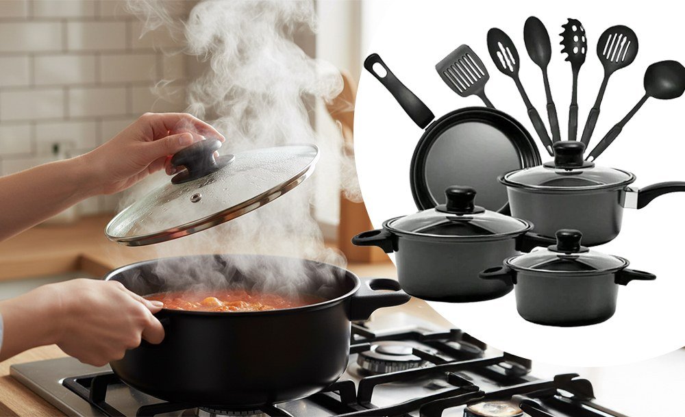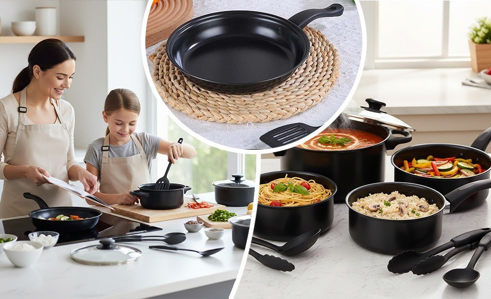 Прочное многослойное дно поддерживает равномерный нагрев, а антипригарное покрытие позволяет готовить почти без масла. Эргономичные ручки с термозащитой не нагреваются, поэтому не обжигают руки. Посуда легко моется, устойчива к царапинам и долго сохраняет аккуратный внешний вид. Подходит для всех типов плит, кроме индукционных.