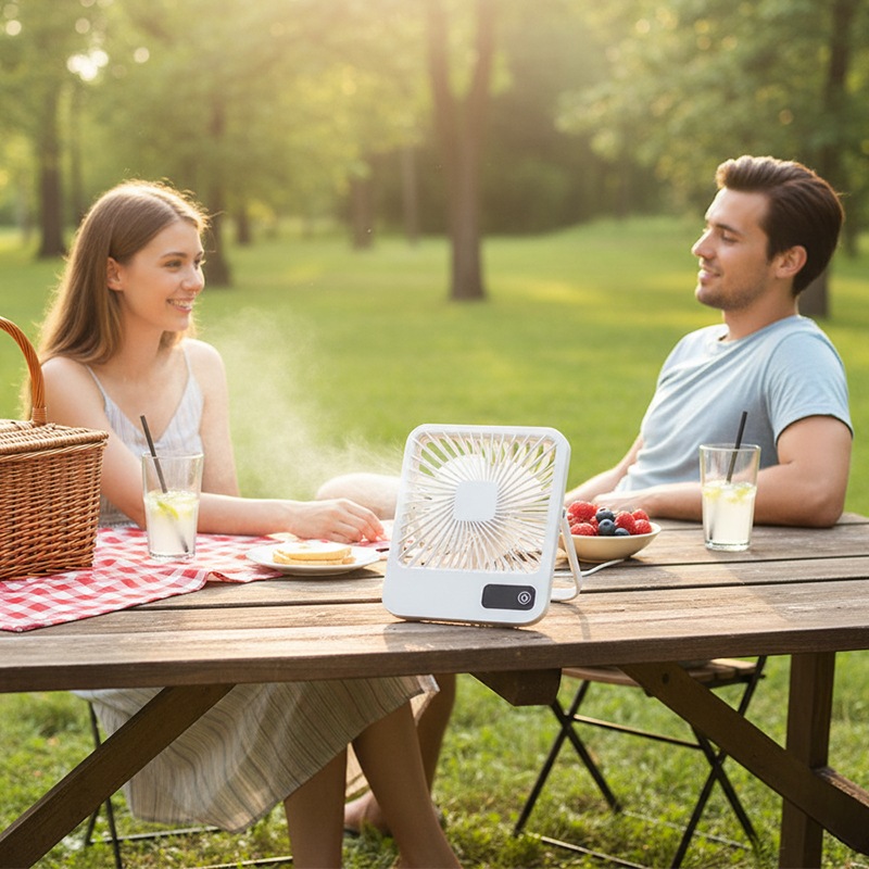Прибор включается с кнопки и дополнен LED-дисплеем, где отображаются текущие настройки, делая его управление простым и наглядным. Он идеально подходит для дома, офиса или поездок, сочетая мобильность, стиль и эффективность. Отличный спаситель от жары в летнюю пору!
