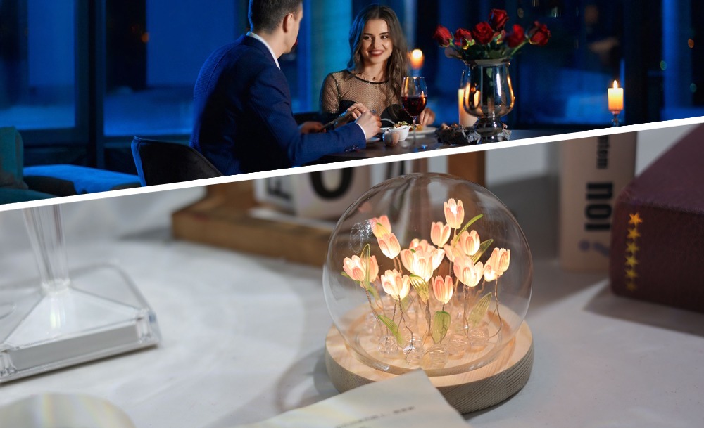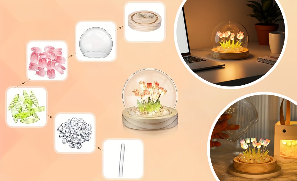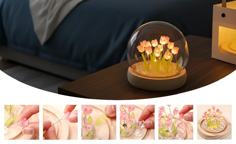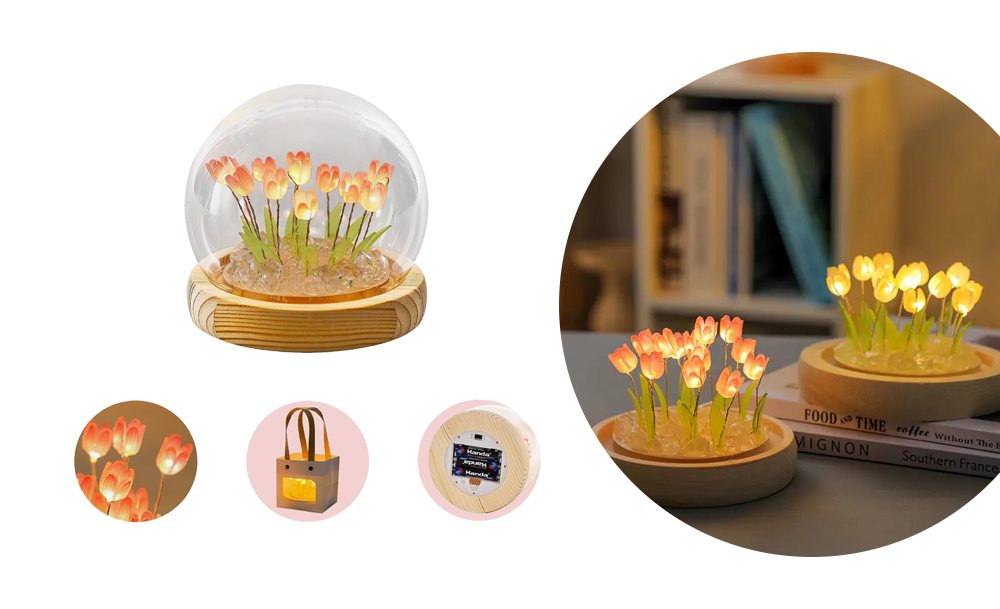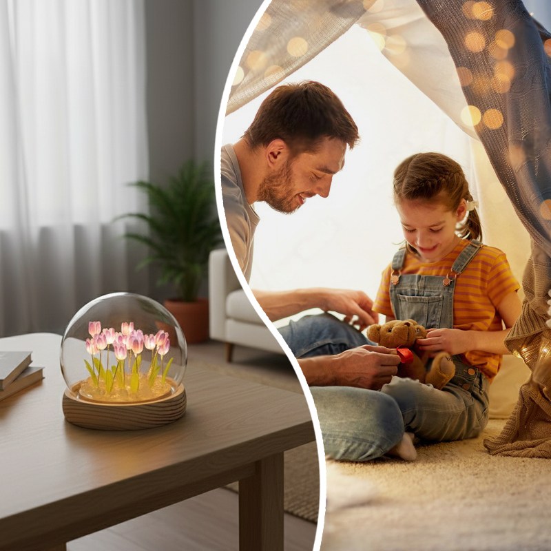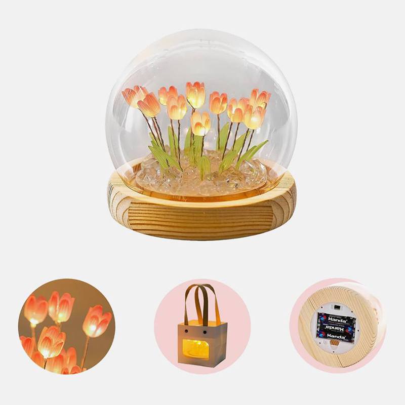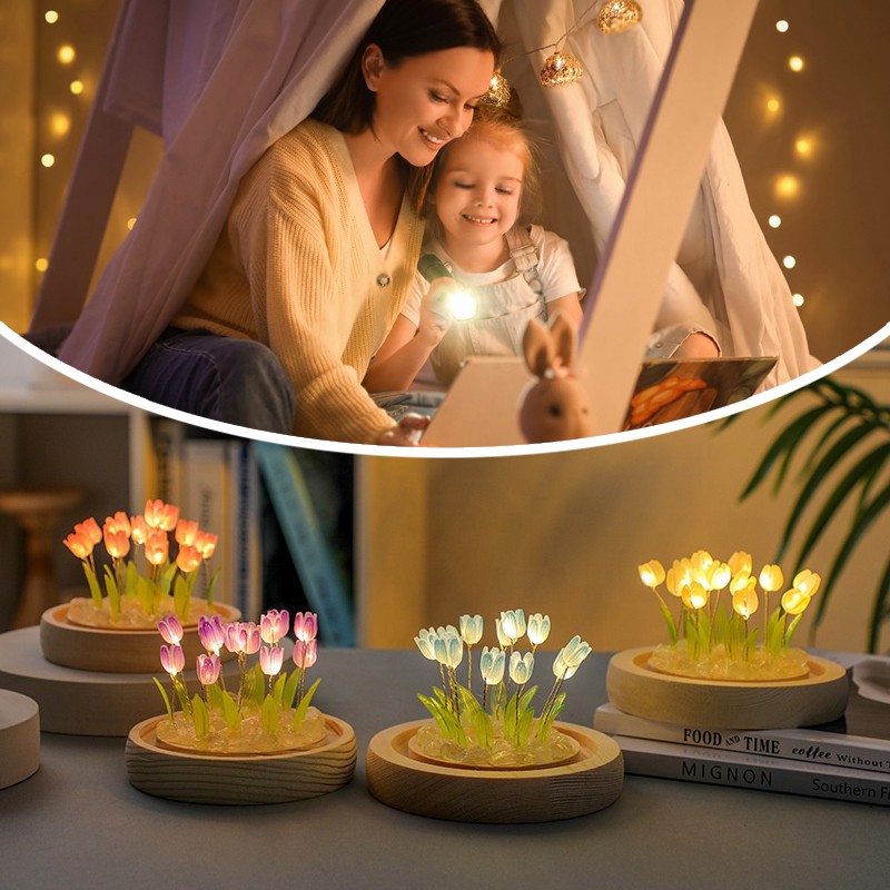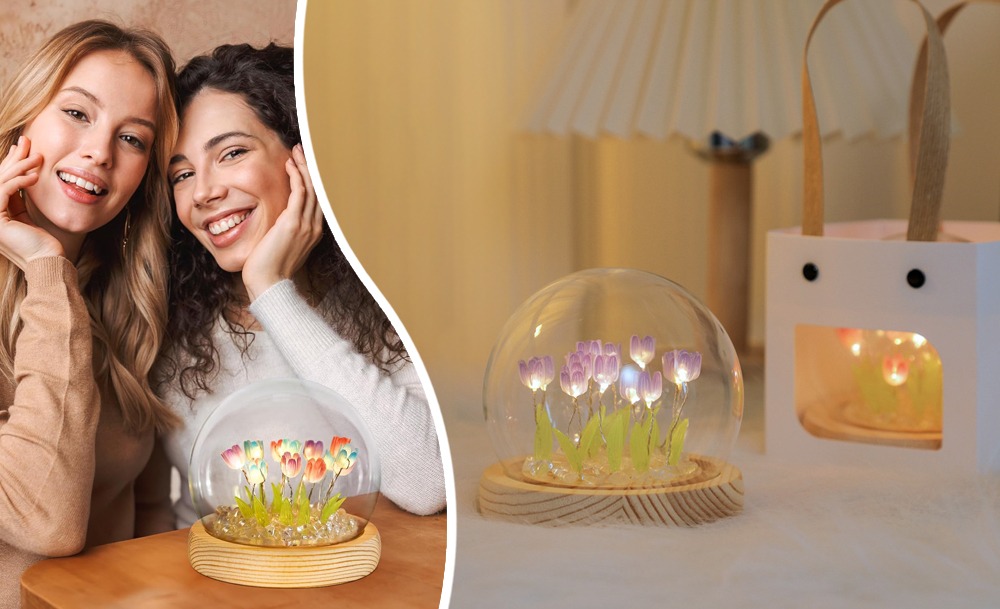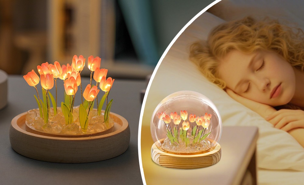 Настольный ночник тюльпаны в стеклянной колбе с LED подсветкой создаёт уютную и тёплую атмосферу в комнате. Элегантный дизайн с нежными тюльпанами в стеклянной колбе станет стильным дополнением интерьера и подходит для детской, спальни или гостиной.
