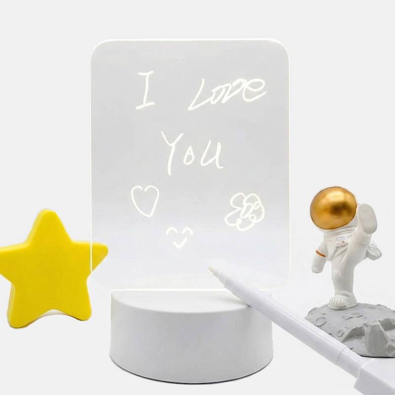 Изысканный набор по-настоящему оживляет пространство. Причем это не только атмосферный декор, но и практичные вещи – ночник и удобная поверхность для записей. Важные дела, планы и напоминания всегда будут перед глазами. Комплект идеален для спальни, детской и рабочего стола.