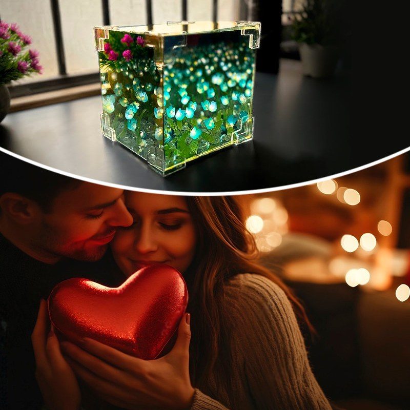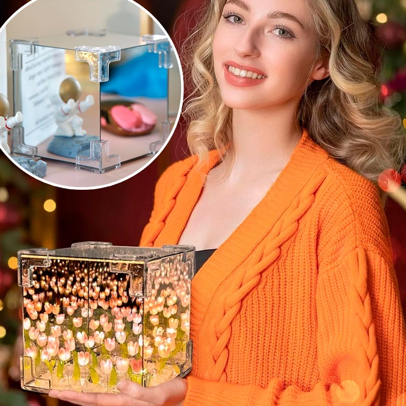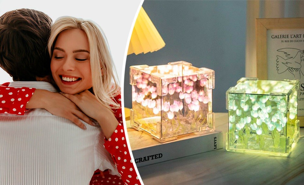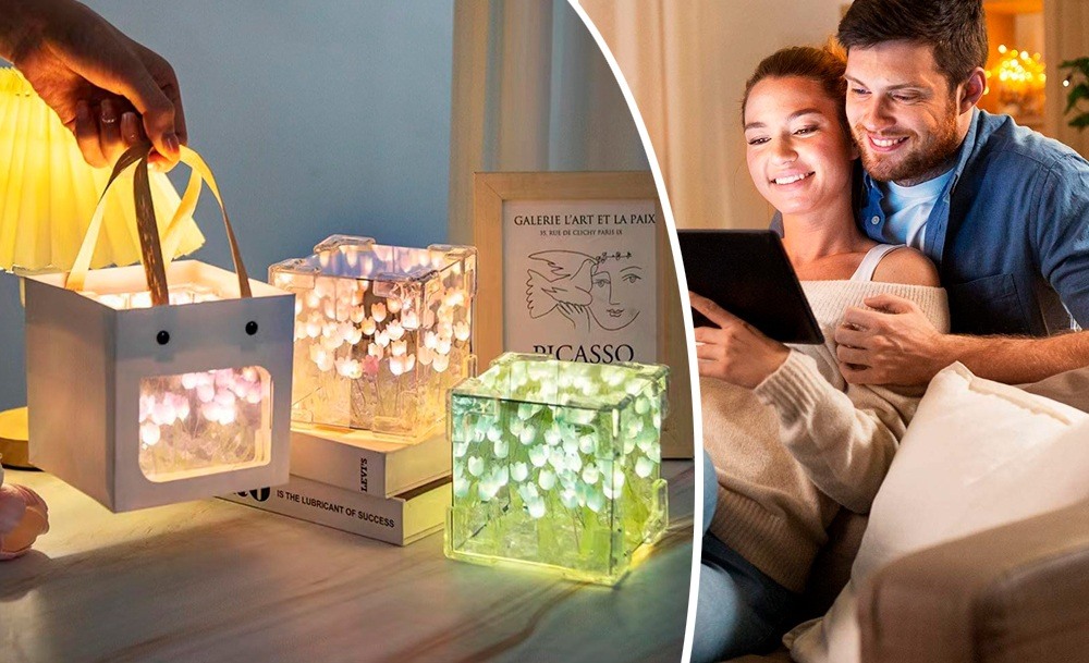 Ночник-светильник Тюльпаны в кубе + Настольный 3D светильник-доска для заметок