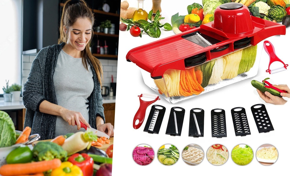 Удобная и компактная овощерезка Mandoline Slicer 6 в 1 станет незаменимым помощником на кухне. Она позволяет быстро нарезать овощи и фрукты разной формы и толщины — от тончайших ломтиков до соломки. Благодаря сменным насадкам, вы легко приготовите ингредиенты для салатов, гарниров или овощных закусок без лишних усилий.