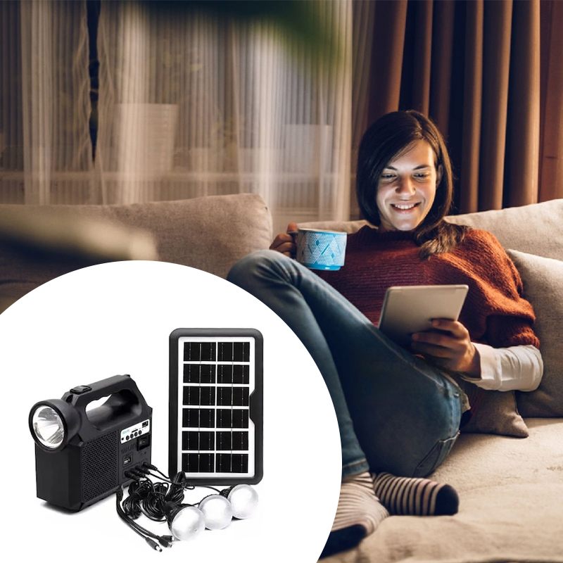 Переносной фонарь с солнечной панелью GDLITE GD101 Solar Panel, 4500 мАч, 3 лампочки 3W, USB выход. Эта солнечная система разработана для обеспечения надежного аварийного освещения и зарядки ваших гаджетов без необходимости использования электроэнергии из сети.