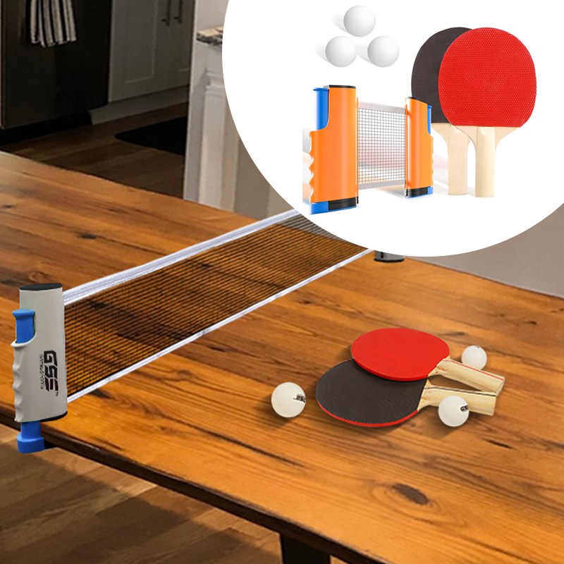 Портативный набор для настольного тенниса с выдвижной сеткой, ракетками и мячами