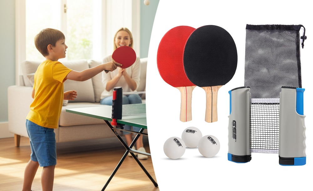 Портативный набор для настольного тенниса с выдвижной сеткой, ракетками и мячами — это удобный комплект, который позволяет устроить игру в пинг-понг в любом месте. Сетку можно быстро развернуть на любой подходящей поверхности. Она легко фиксируется и также просто складывается обратно.