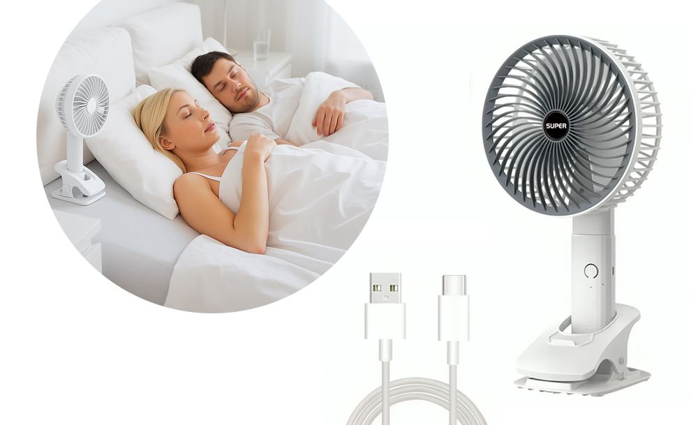 Портативный вентилятор Clip+Mobile Stand — это надёжное и компактное решение для персонального охлаждения в любых условиях. Благодаря мощному потоку воздуха и удобной прищепке устройство легко крепится на стол, полку, коляску или кровать. Идеально подходит для дома, офиса, поездок и отдыха на природе.