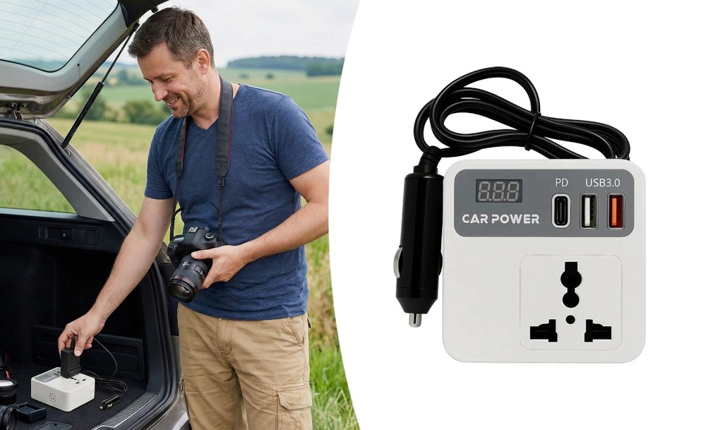 Компактный преобразователь напряжения Car Power 12-220V превращает обычный автомобиль в полноценный источник питания для техники. Он подсоединяется напрямую к прикуривателю и выдает стабильные 220 вольт – как в домашней розетке. Через него можно без проблем заряжать ноутбук или использовать дорожные электроприборы.