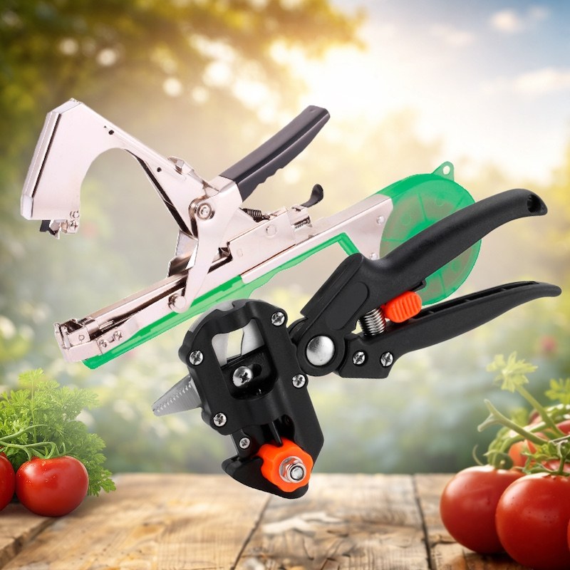 Садовый степлер для подвязывания и профессиональный секатор для обрезки и прививки – практичный набор для эффективного ухода за растениями. Степлер позволяет быстро закреплять стебли и побеги, обеспечивая аккуратную фиксацию без повреждений. Секатор подходит для обрезки веток и выполнения прививок, создавая ровный и точный срез.