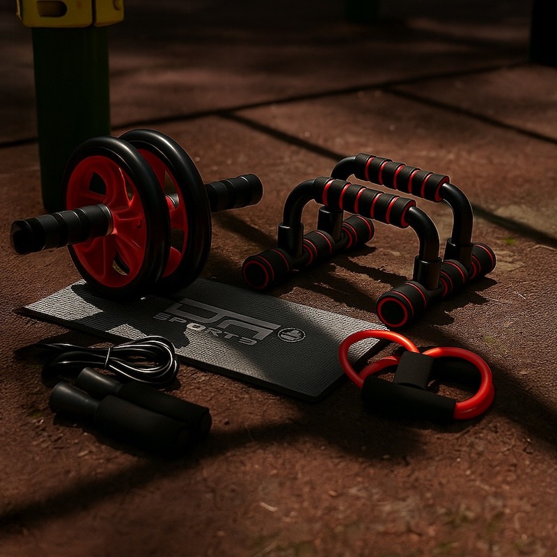 Спортивный набор 6 в 1 — это универсальное решение для домашних тренировок. В комплект входят ролик для пресса, упоры для отжиманий, скакалка, эспандер, фитнес-резинка и коврик. Все элементы подобраны так, чтобы вы могли проработать основные группы мышц, улучшить выносливость и поддерживать форму, не выходя из дома.