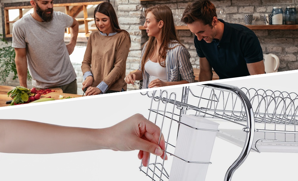 Прочная металлическая основа обеспечивает надежность и долговечность, а открытая структура способствует быстрому высыханию посуды. Раздельные секции помогают поддерживать порядок и удобный доступ ко всем предметам. Стильный и функциональный органайзер делает кухню более организованной и комфортной для ежедневного использования.