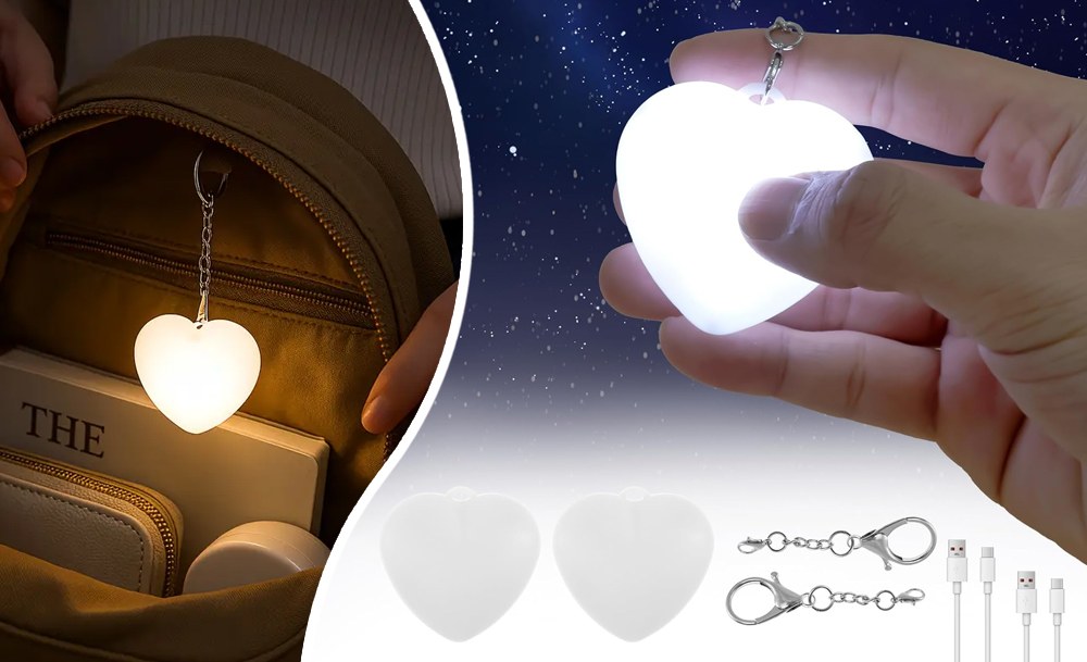 Брелок в форме сердца оснащен ярким светодиодом. Он активируется прикосновением и автоматически отключается через 12 секунд для экономии заряда. Брелок имеет компактный размер и питается от встроенного аккумулятора с возможностью зарядки через кабель USB, что делает его удобным аксессуаром.
