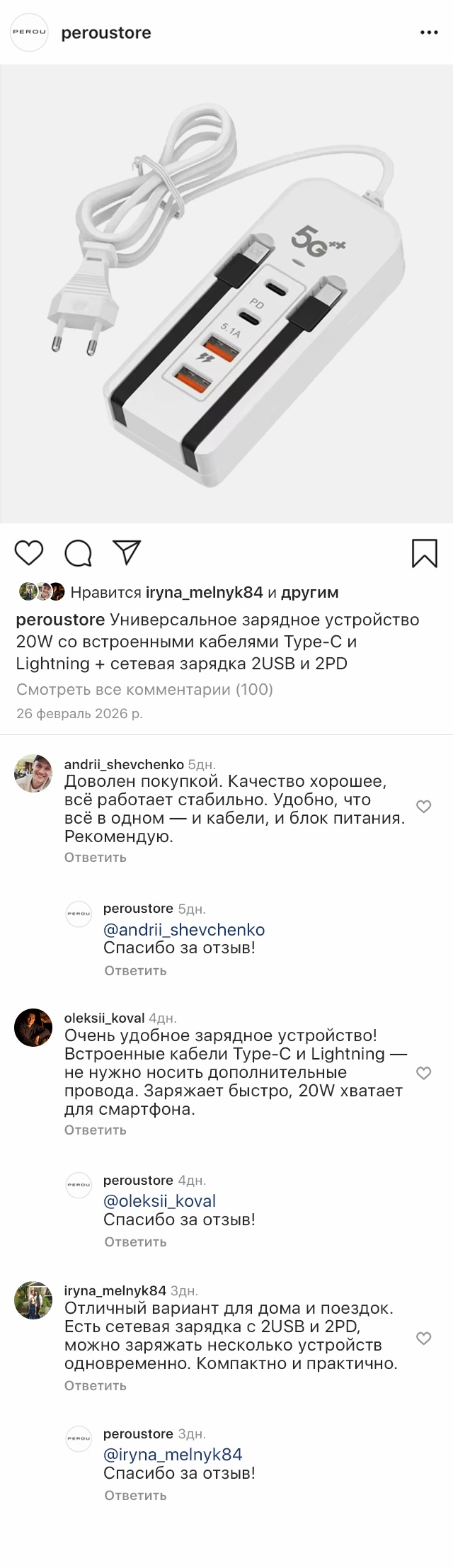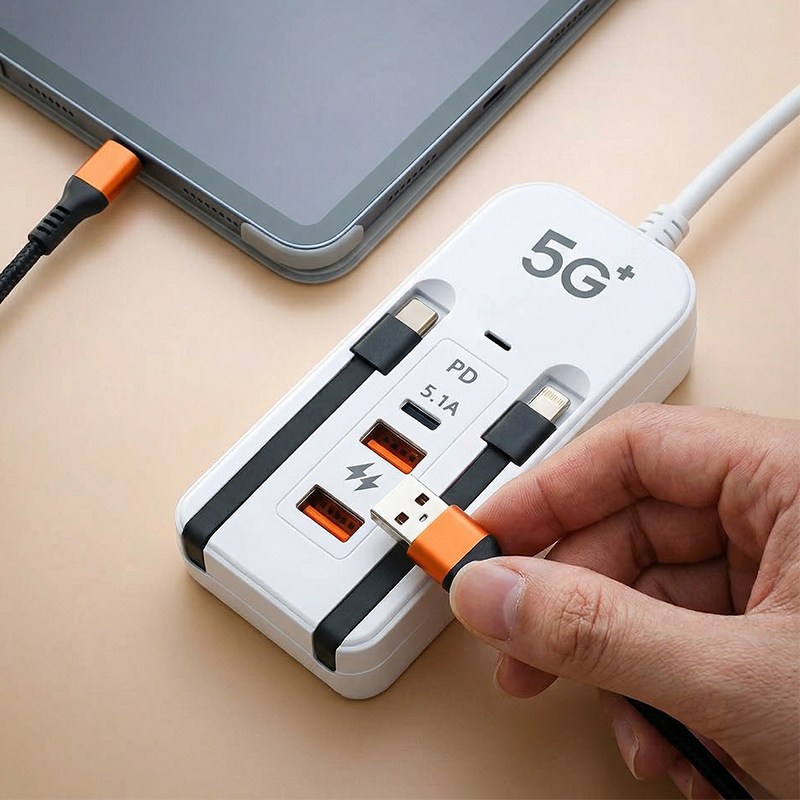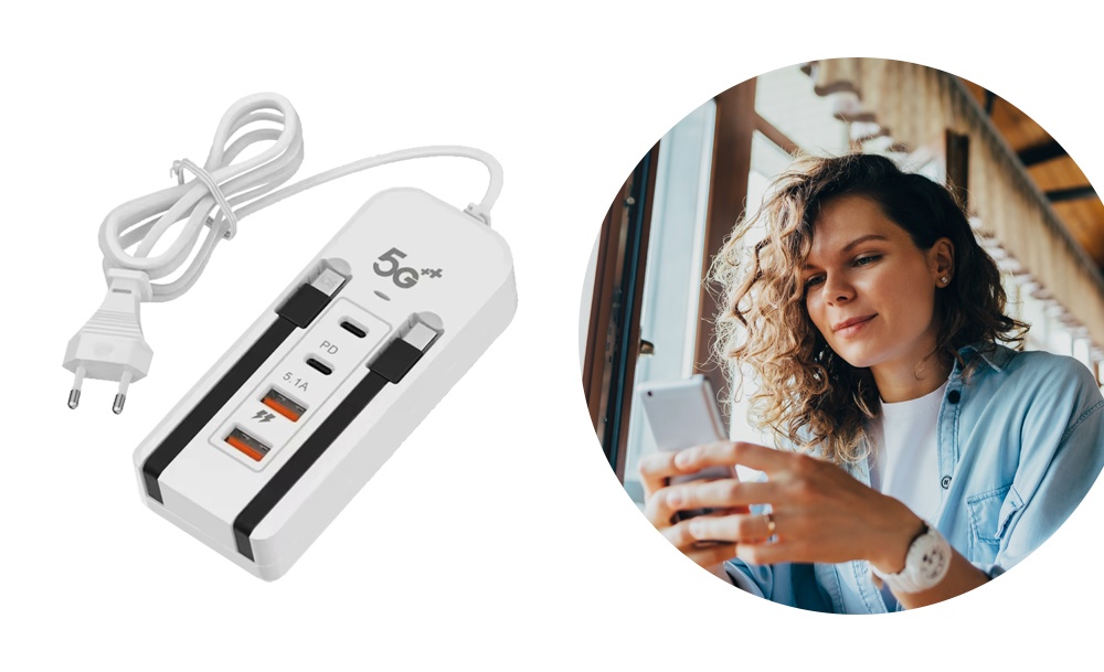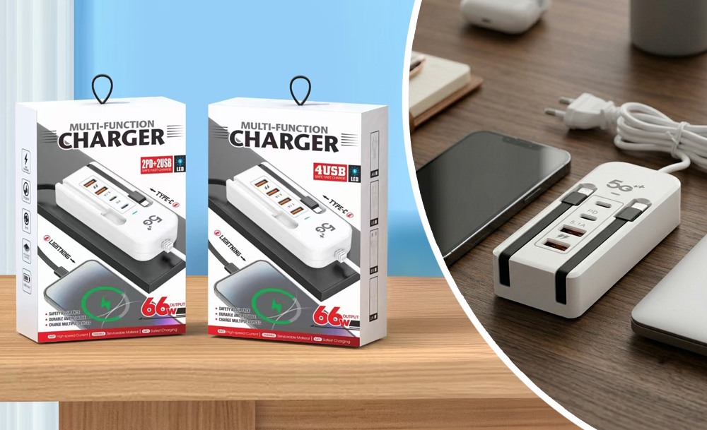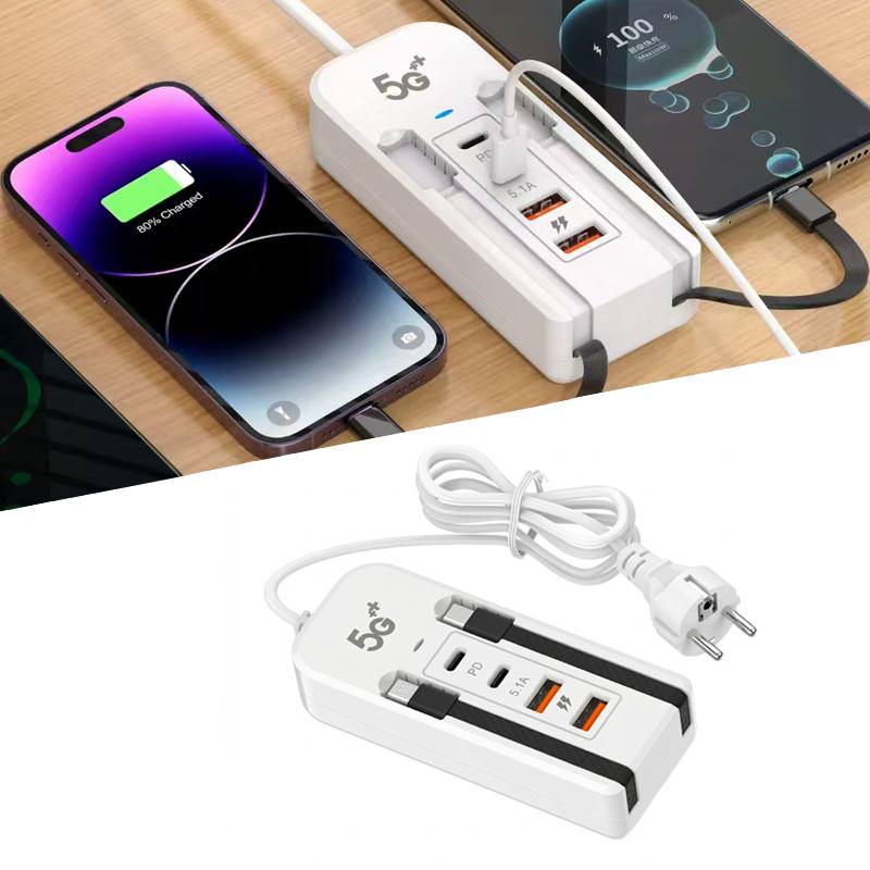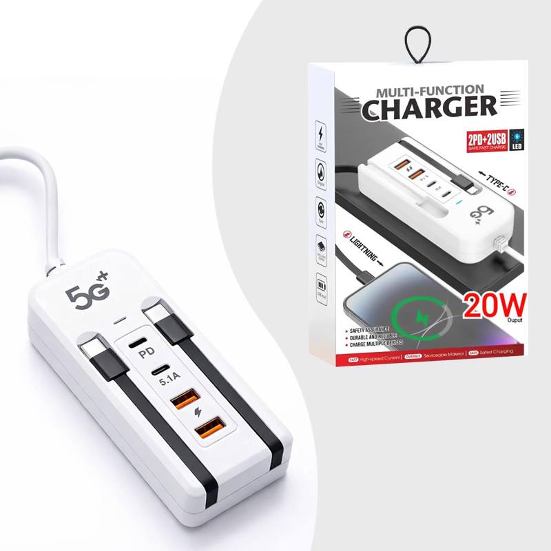 Универсальное зарядное устройство 20 Вт со встроенными кабелями Type-C и Lightning и сетевая зарядка на 2 USB и 2 PD – это удобный комплект для быстрой подзарядки любых девайсов. Продуманное сочетание позволяет обходиться без лишних проводов и адаптеров, экономя место и время.