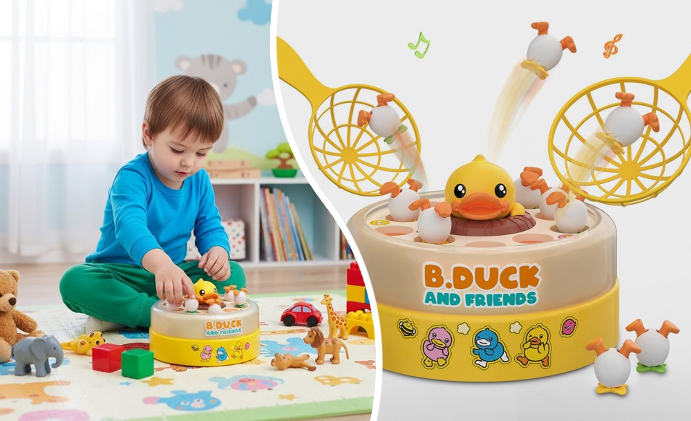 Музыкальная карусель B. Duck – это не просто игра, а настоящая тренировка для развития мелкой моторики и когнитивных навыков у детей. Она заставляет маленьких игроков быстро сконцентрировать внимание в процессе игры.