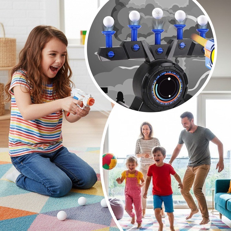 Воздушный тир Hover Blast – это увлекательная интерактивная игра, которая превращает обычную стрельбу в настоящее шоу. Летающие мишени-шарики парят в воздухе, создавая эффект реального тира и делая каждое попадание особенно зрелищным.