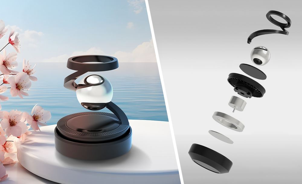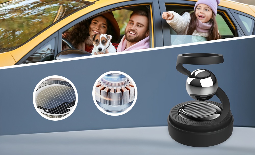Вращающийся автомобильный ароматизатор Океан на солнечной батарее – стильное решение для тех, кто хочет поддерживать свежесть в салоне без лишних затрат. Солнечная панель запускает плавное вращение левитирующего шара, который равномерно распространяет океанический бриз по всему автомобилю.