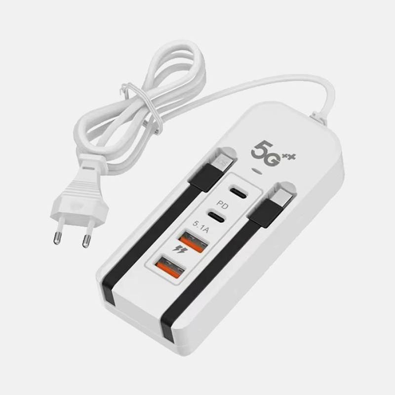 Універсальний зарядний пристрій 20W з вбудованими кабелями Type-C та Lightning + мережева зарядка 2USB та 2PD