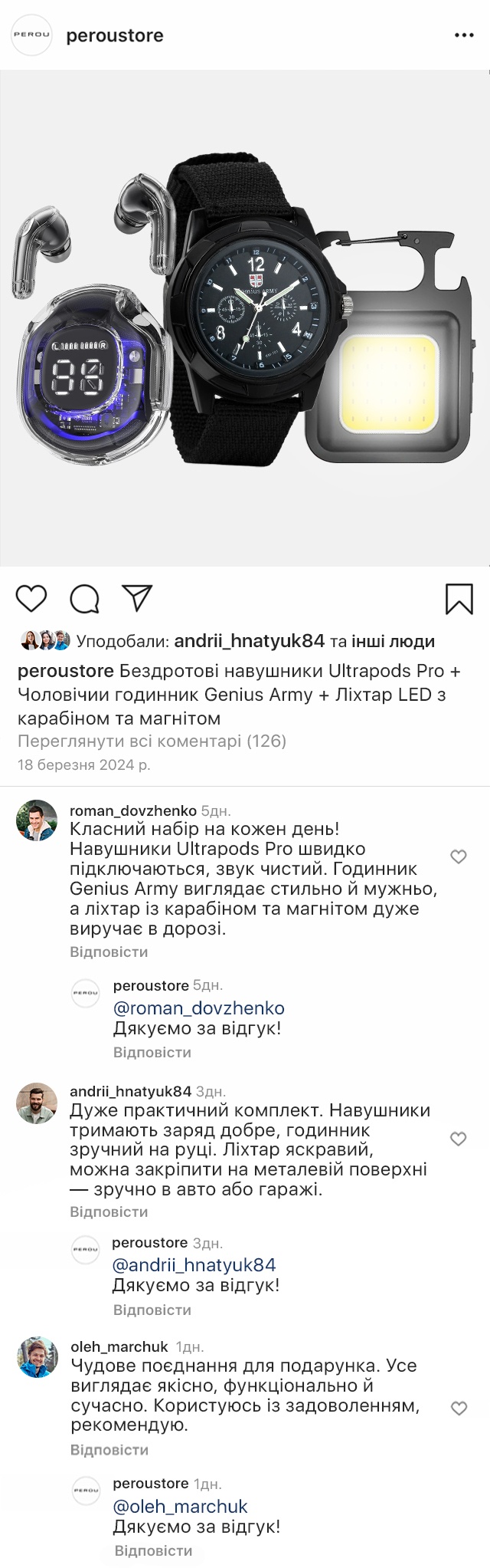 Навушники, годинник та ліхтар – універсальний комплект для тих, хто цінує технології, стиль та практичність. Бездротові навушники Ultrapods Pro забезпечують чистий, насичений звук. Вони швидко підключаються, довго тримають заряд і добре підходять як для музики, так і для дзвінків.