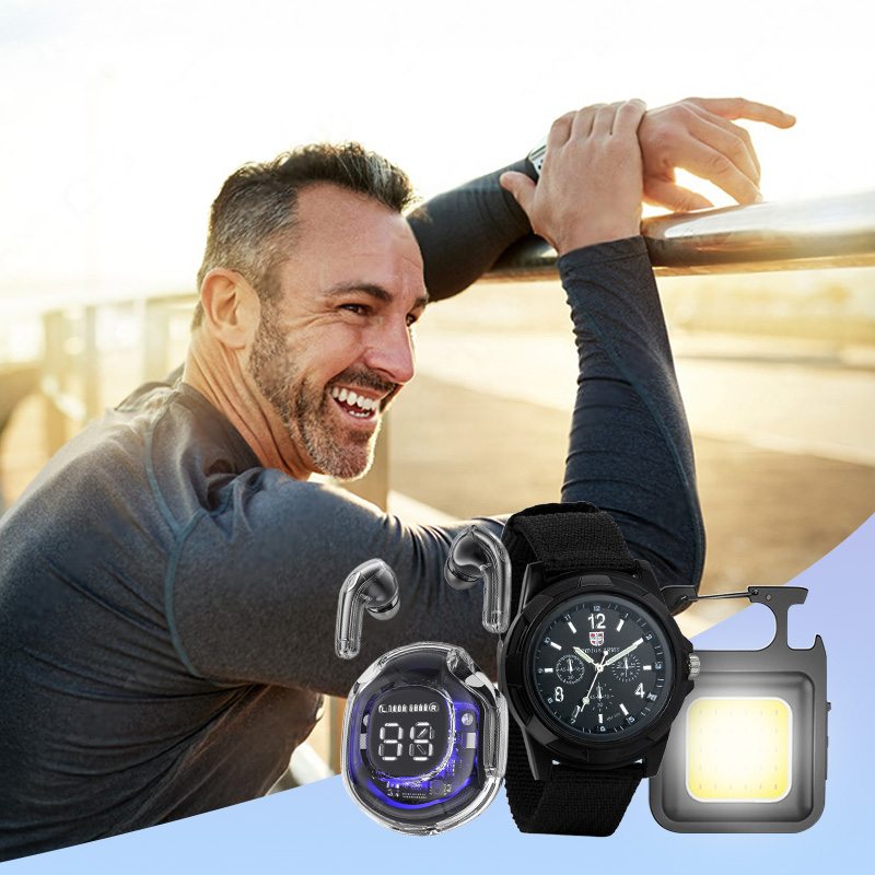 Бездротові навушники Ultrapods Pro + Чоловічий годинник Genius Army + Ліхтар LED з карабіном та магнітом