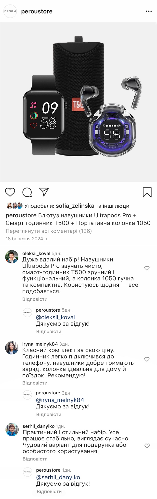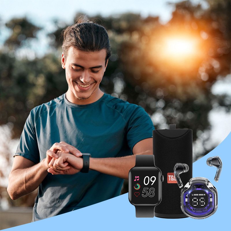 Комплект із блютуз-навушників Ultrapods Pro, смарт-годинника T500 та портативної колонки 1050 — це універсальний набір для щоденного використання, спорту та активного дозвілля. Навушники забезпечують чистий і насичений звук, смарт-годинник допомагає стежити за часом, активністю та сповіщеннями, а колонка дозволяє насолоджуватися улюбленою музикою в будь-якому місці.