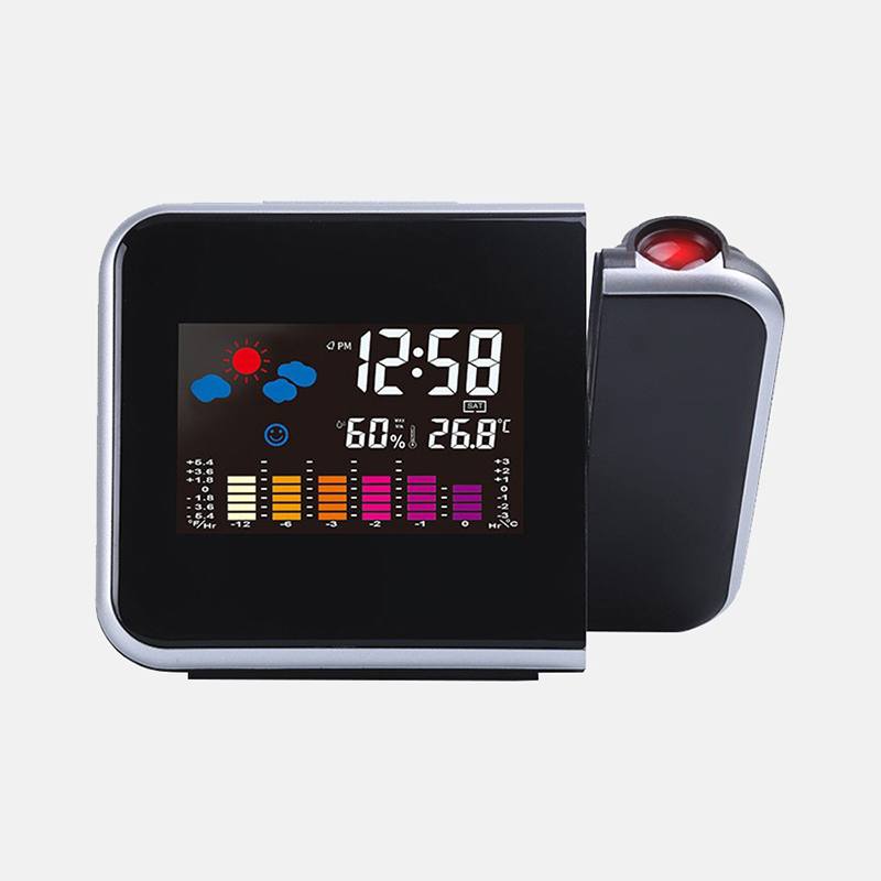 Пристрій вимірює діапазон температури від 0 до +50 °C та вологість від 20 до 99% RH. Проектор із обертанням на 180 градусів дозволяє вивести час червоним кольором на стіну чи стелю. Додатково годинник має функцію відображення прогнозу погоди та збереження максимальних та мінімальних значень. Живиться пристрій від батарейок або мережевого адаптера.