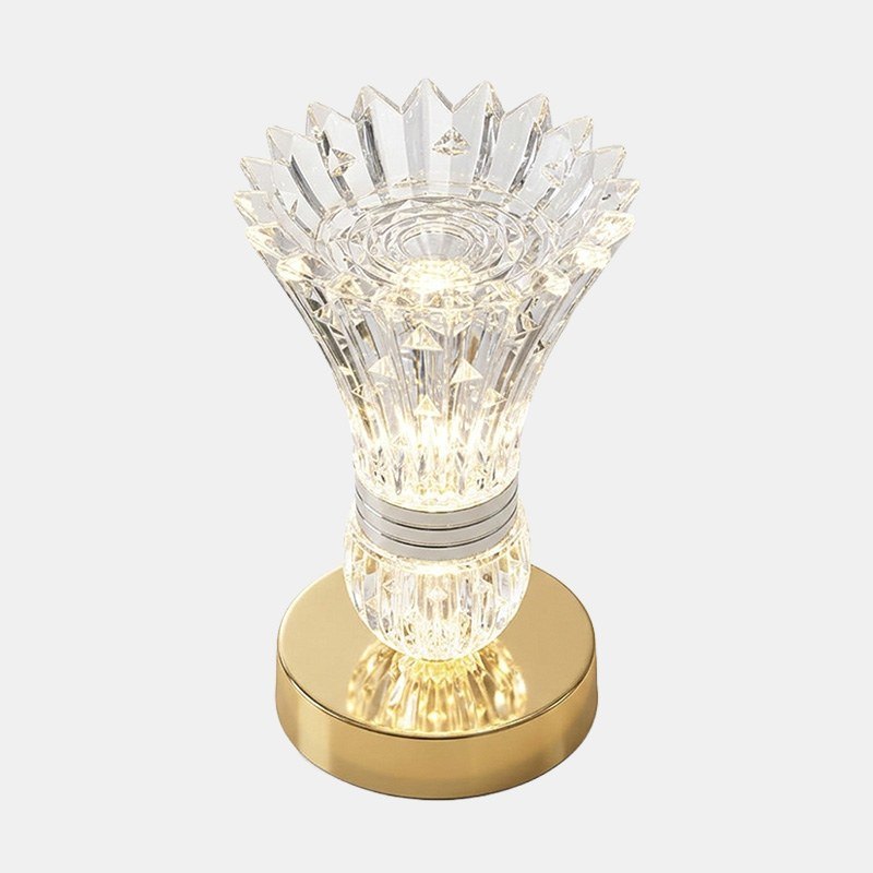 Настільна LED-лампа у вигляді кришталевої вази з квітами – це витончений нічник, який наповнює простір м’яким світлом та створює неповторну атмосферу затишку. Ефект кришталю гарно заломлює світло, формуючи ніжні переливи.