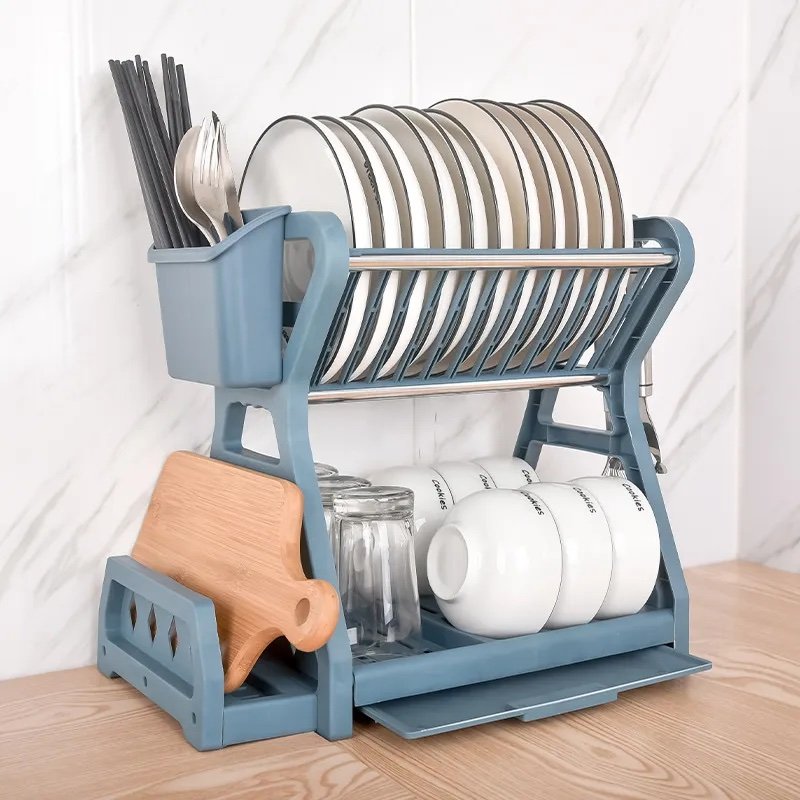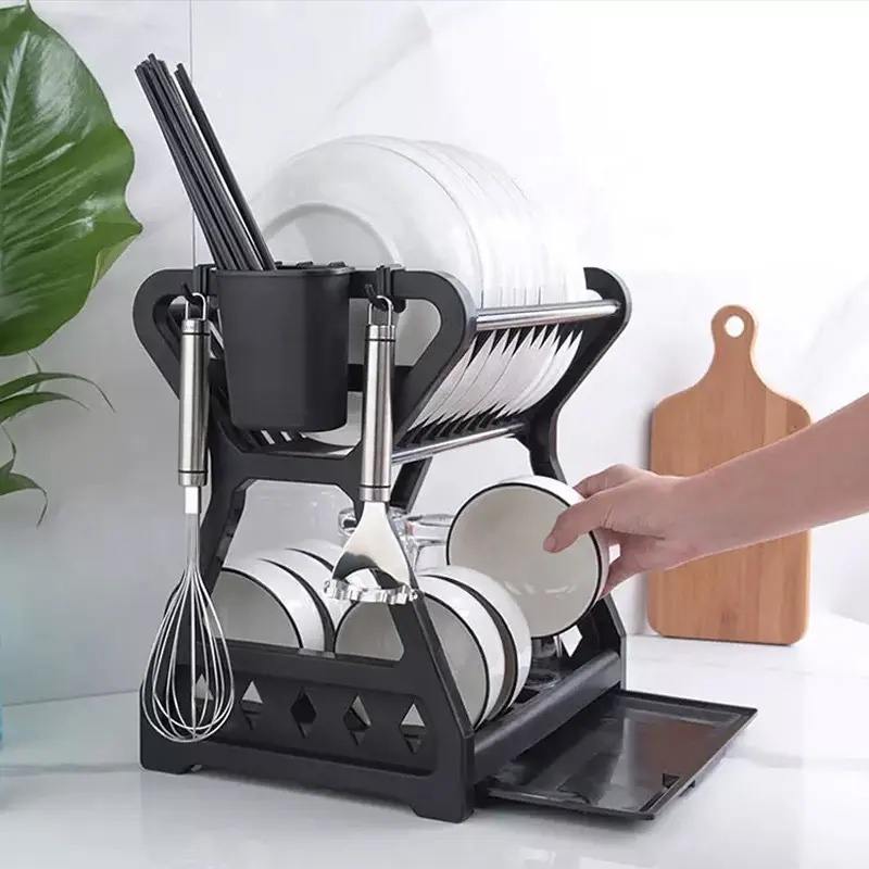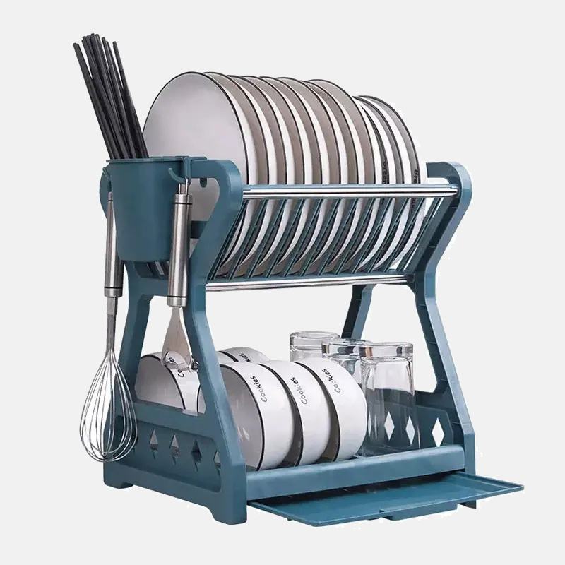 Дворівнева сушарка для посуду – це універсальна підставка для компактного зберігання тарілок, чашок та келихів, ложок, вилок, ножів та інших кухонних аксесуарів.