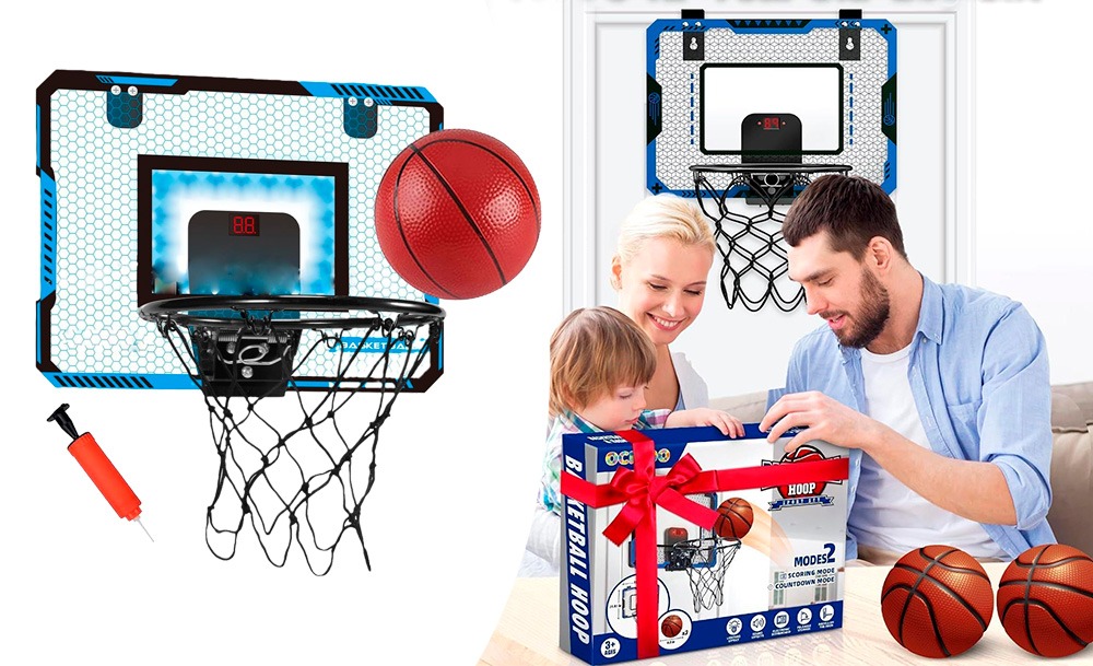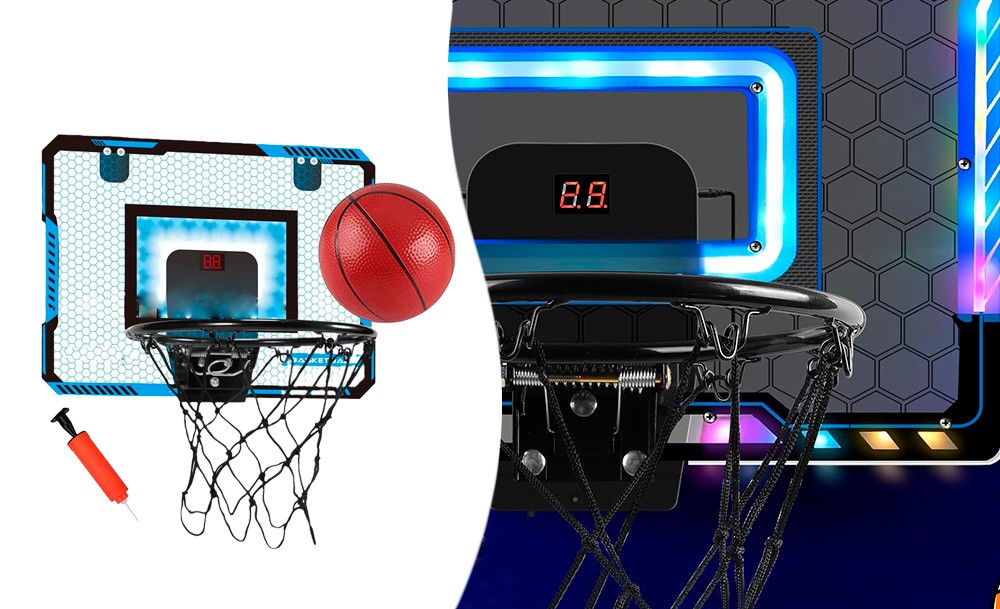 Дитячий баскетбольний набір з електронним табло – це ідеальний аксесуар для активних ігор та перших спортивних досягнень! Комплект включає все необхідне для захоплюючої гри: міцний пластиковий щит, металеве кільце з сіткою, м’яч та насос. Електронне табло зі звуковими ефектами робить процес гри динамічним та захоплюючим, фіксуючи кожне влучення в кільце.